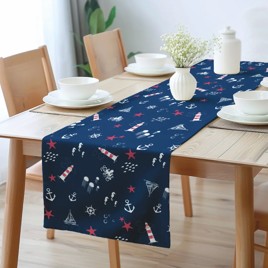 Wprowadź do swojego domu morską atmosferę dzięki bieżnikowi w stylu marynistycznym! To stylowy dodatek do jadalni, kuchni lub salonu, który ożywi wnętrze, nada mu elegancji i jednocześnie zabezpieczy stół przed zabrudzeniami.