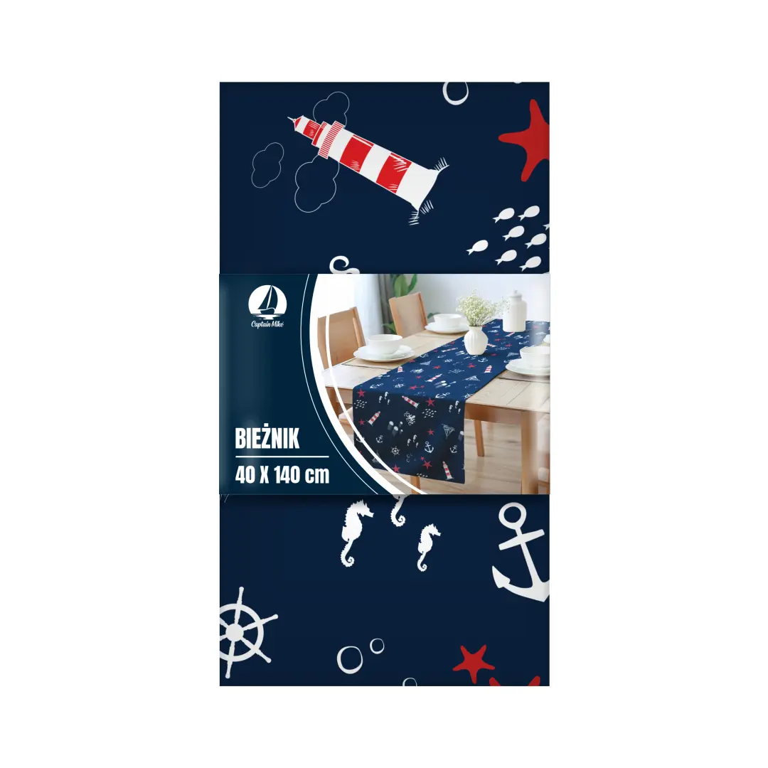 Bieżnik na stół 40x140 cm – marynistyczny akcent do Twojego wnętrza z Captain Mike.