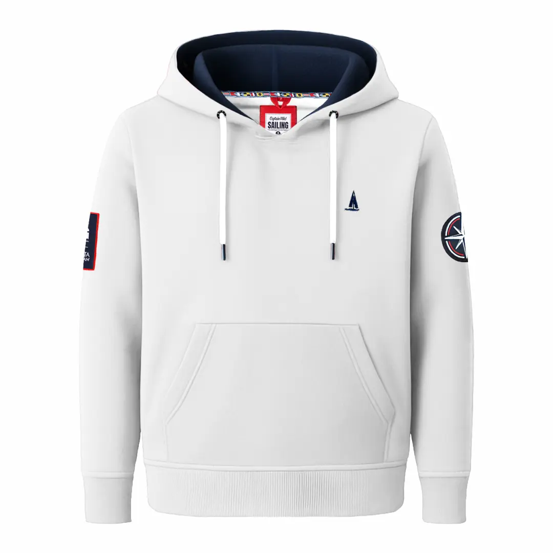 Wykonana z miękkiej, oddychającej bawełny tureckiej z dodatkiem poliestru, doskonale sprawdzi się zarówno na chłodniejszych rejsach, jak i podczas wieczornego relaksu w marinie. Praktyczna kieszeń typu kangurka ogrzeje dłonie po zejściu z pokładu, a regulowany kaptur ochroni przed nagłym podmuchem wiatru. Detale z motywami żeglarskimi podkreślają Twój morski charakter.