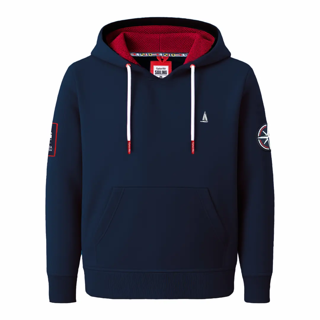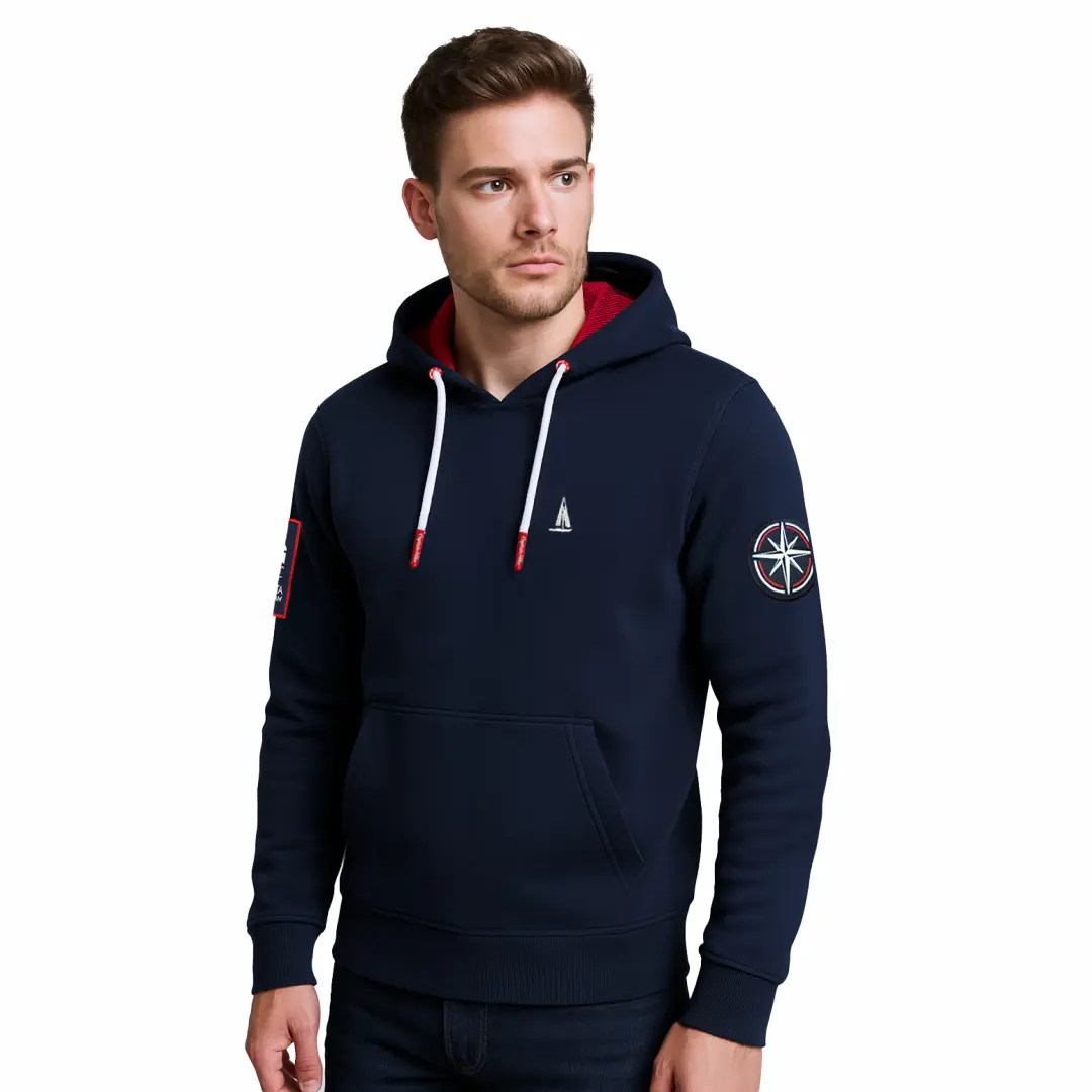 Wykonana z miękkiej, oddychającej bawełny tureckiej z dodatkiem poliestru, doskonale sprawdzi się zarówno na chłodniejszych rejsach, jak i podczas wieczornego relaksu w marinie. Praktyczna kieszeń typu kangurka ogrzeje dłonie po zejściu z pokładu, a regulowany kaptur ochroni przed nagłym podmuchem wiatru. Intensywny granatowy kolor, detale z motywami żeglarskimi podkreślają Twój morski charakter.