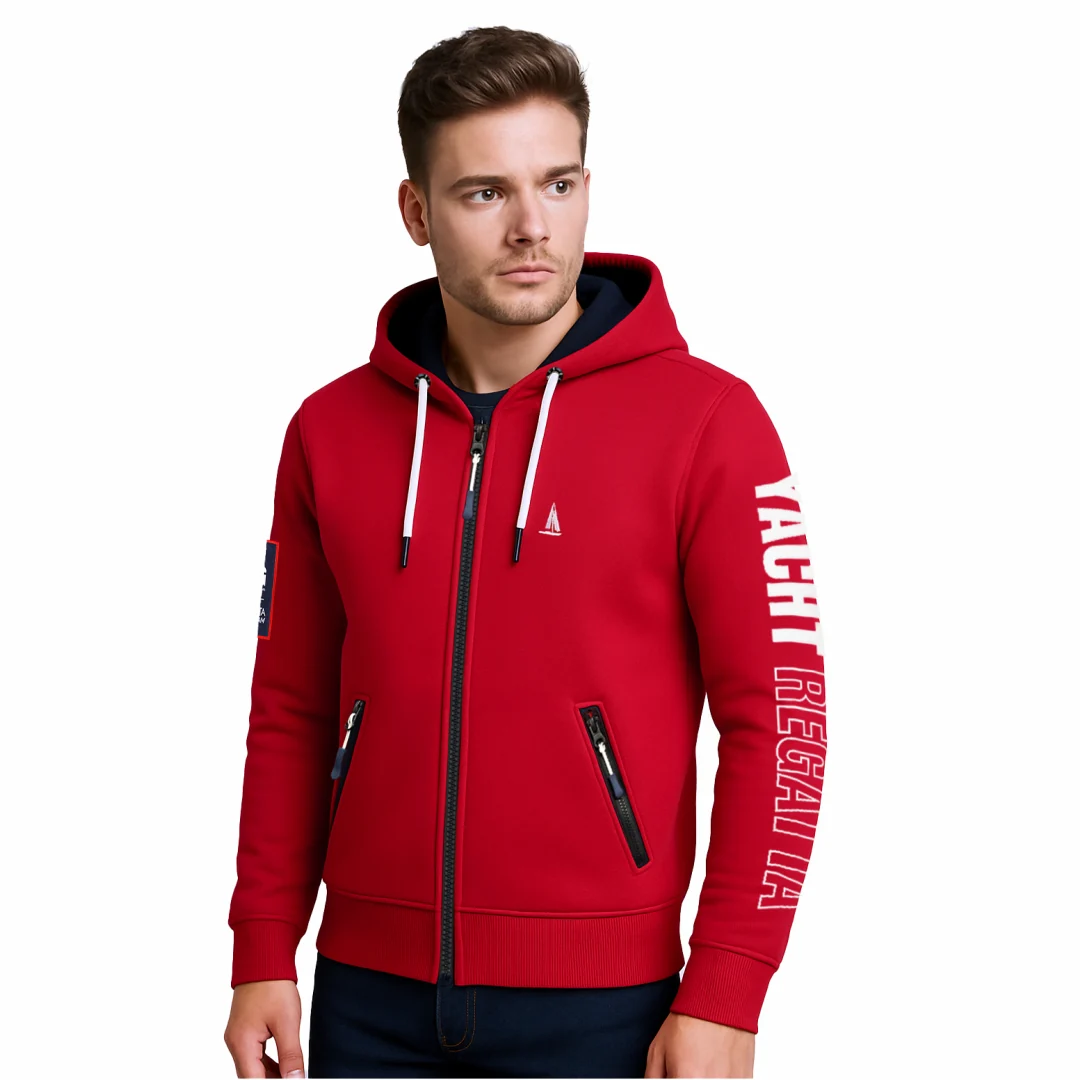 Bluza męska z kapturem rozpinana Yacht Regatta czerwona Captain Mike SAILING