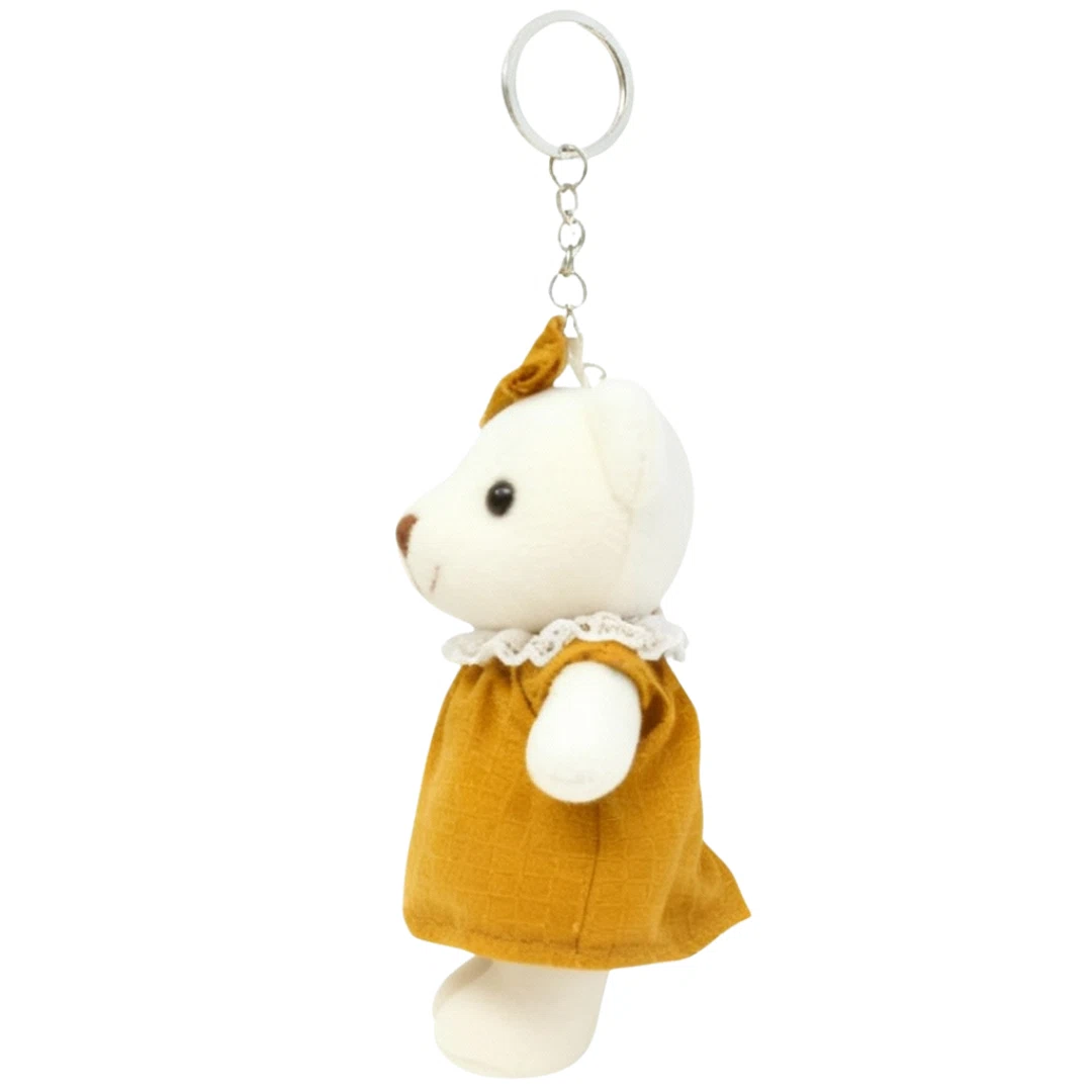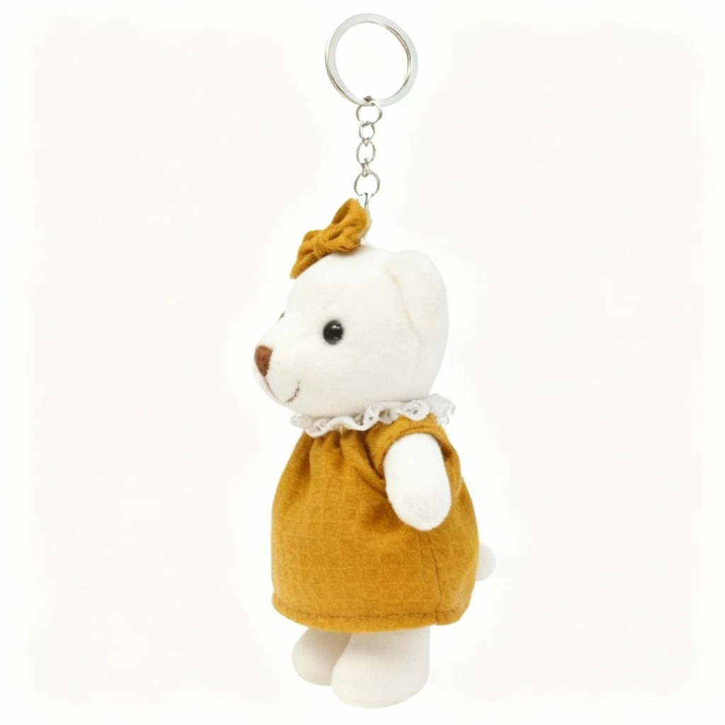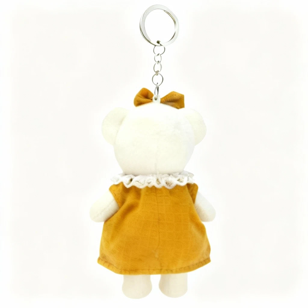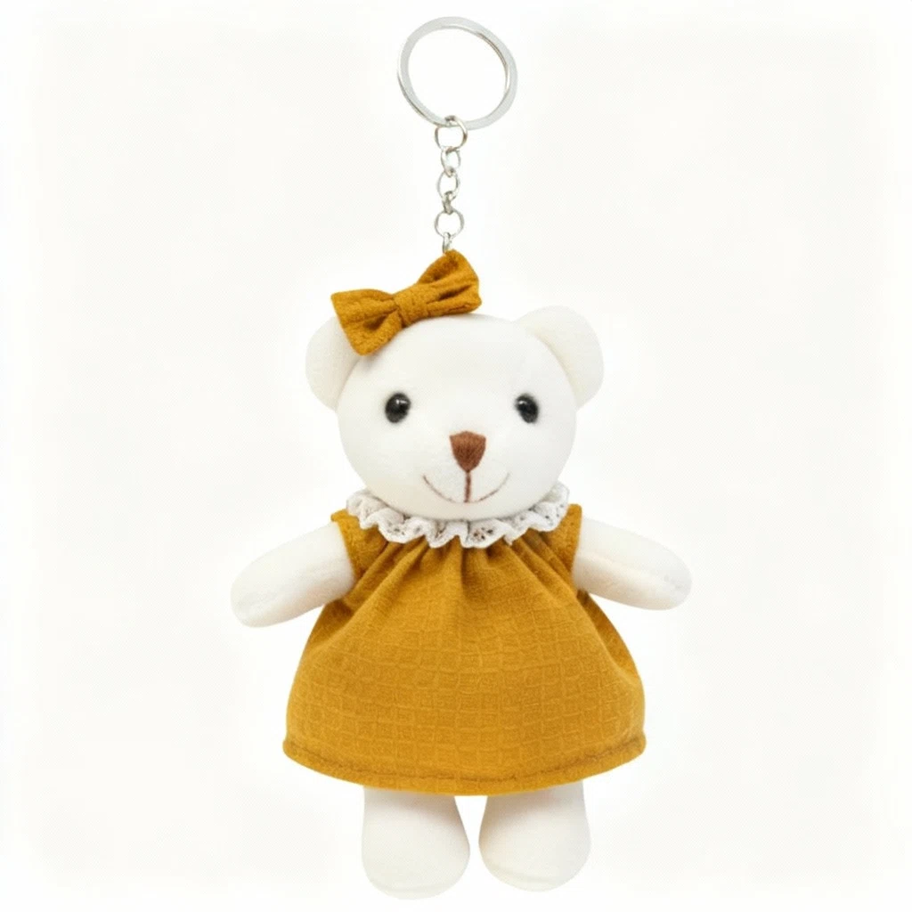 Szukasz idealnego przyjaciela do zabawy? Ten uroczy pluszowy miś skradnie serce każdego dziecka i nie tylko! Breloczek w kształcie misia to wyjątkowy drobiazg, który zachwyci każdego! Wykonany z miękkiego pluszu, przyjemnie się go dotyka i trudno oderwać od niego wzrok. Dodaj odrobinę uroku swoim kluczom, torebce lub plecakowi! Ten uroczy pluszowy miś w eleganckiej, musztardowo-żółtej sukience z koronkowym kołnierzykiem i kokardką to idealny dodatek, który zawsze poprawi Ci humor.