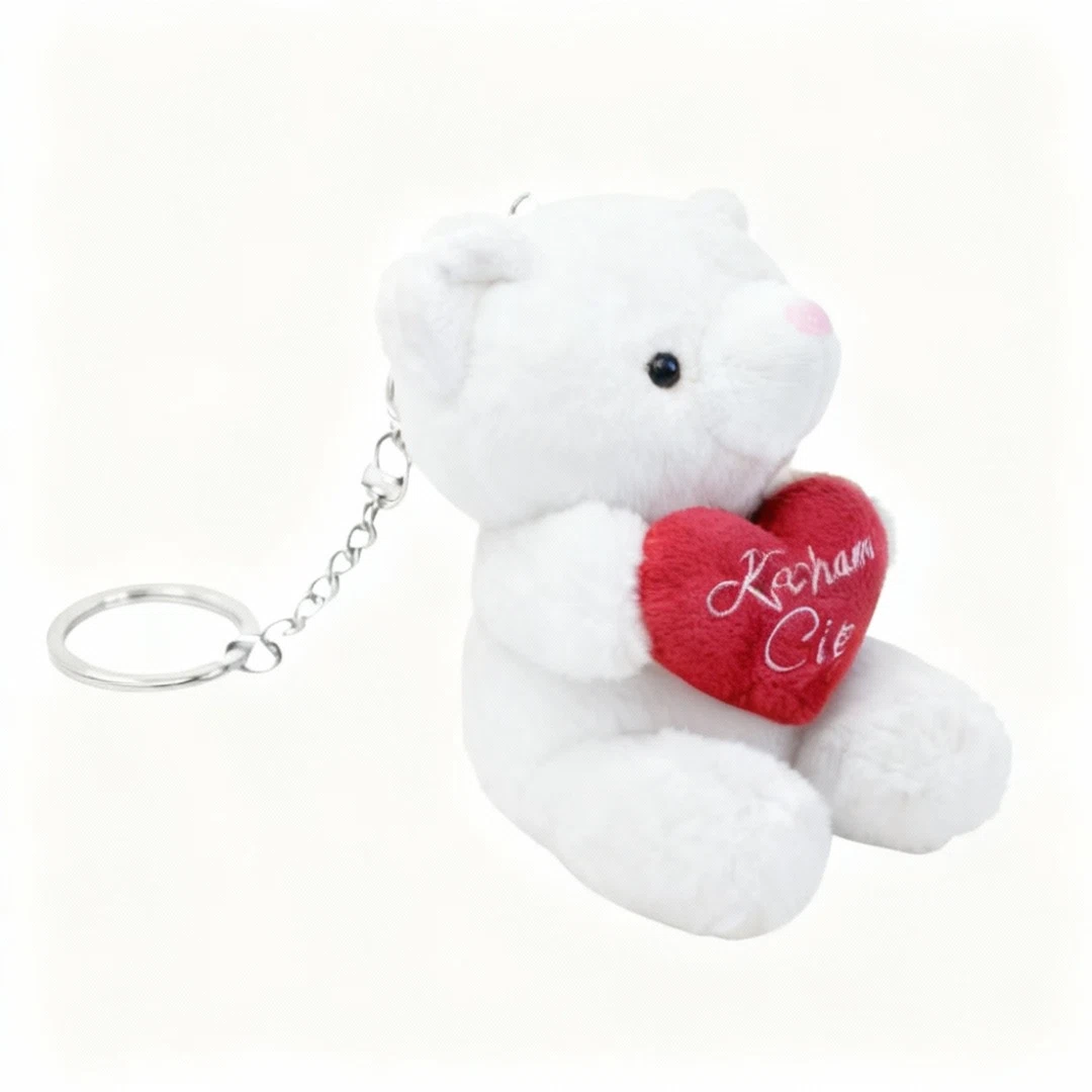 Szukasz idealnego przyjaciela do zabawy i przytulania? Ten uroczy pluszowy miś skradnie serce każdego dziecka! Breloczek w kształcie misia to wyjątkowy drobiazg, który zachwyci każdego! Wykonany z miękkiego pluszu, przyjemnie się go dotyka i trudno oderwać od niego wzrok. Miś trzyma w łapkach czerwone serduszko z napisem „Kocham Cię”, co sprawia, że świetnie nadaje się na prezent dla ukochanej osoby.