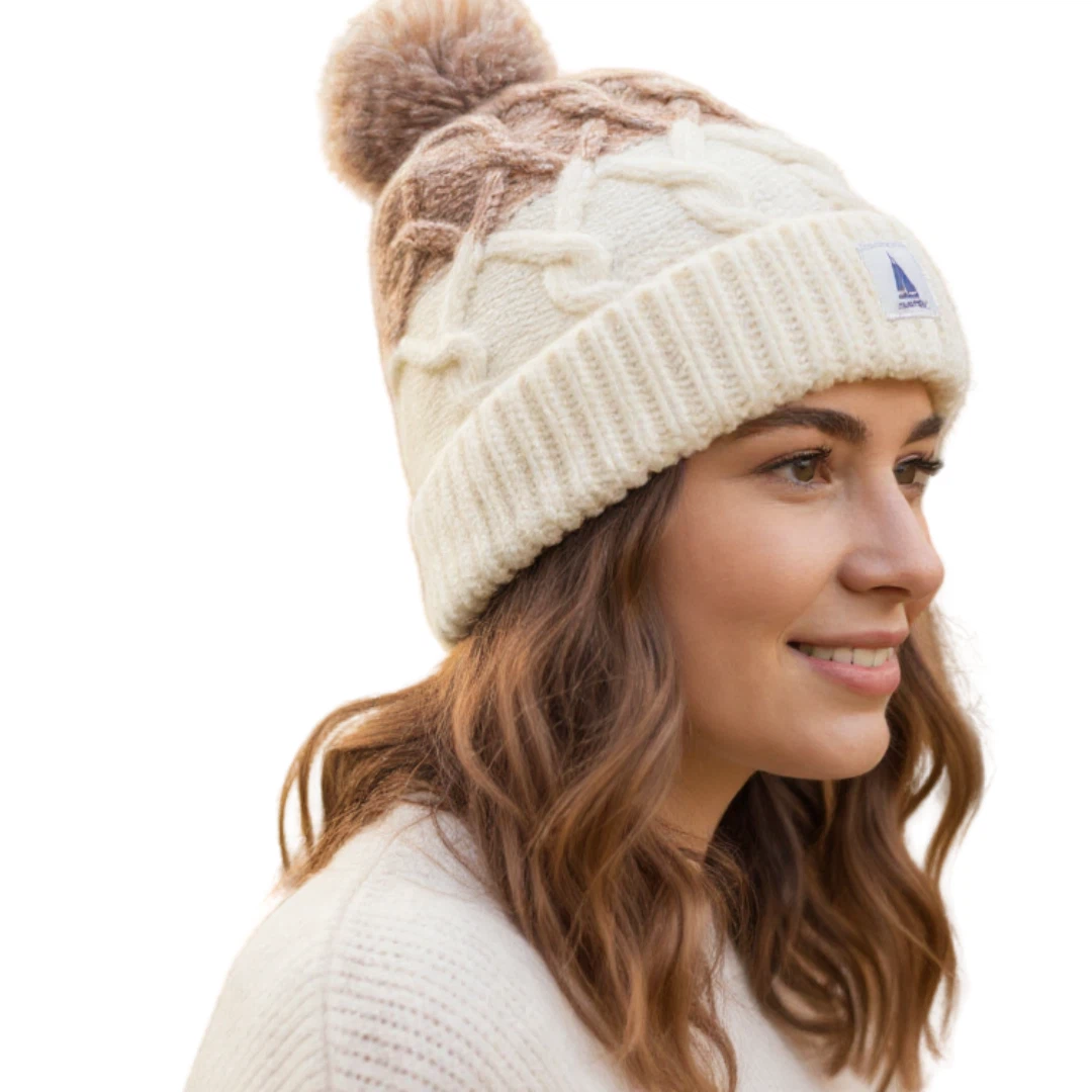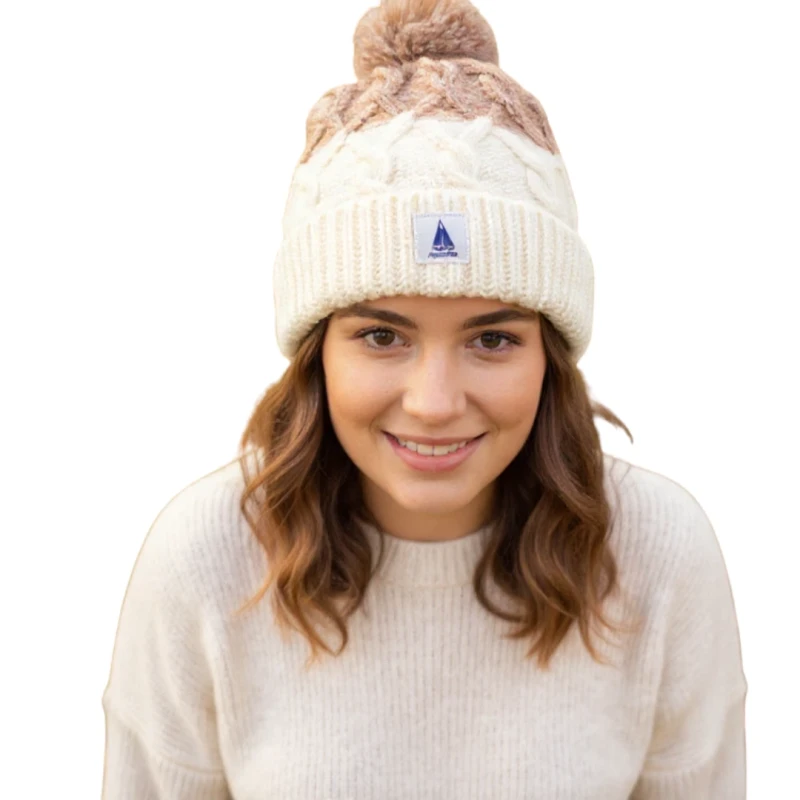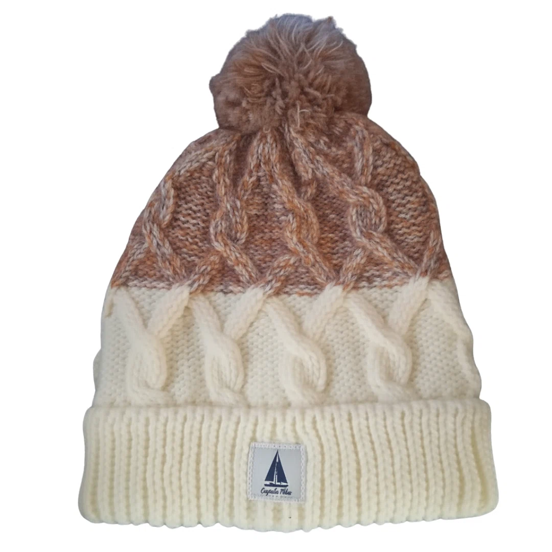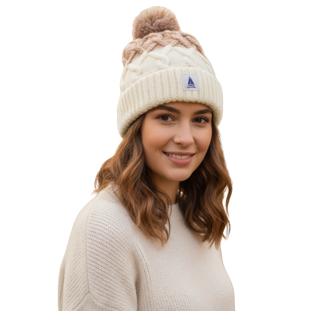 Ciepła czapka damska z grubym splotem i pomponem z naszywką Captain Mike