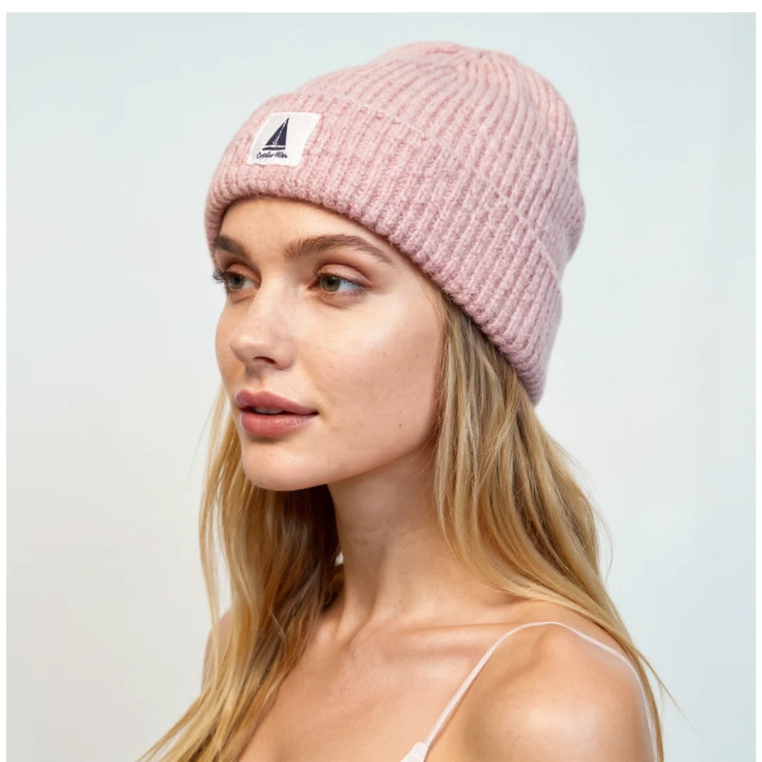 Ciepła czapka damska zimowa różowa beanie dzianinowa Captain Mike