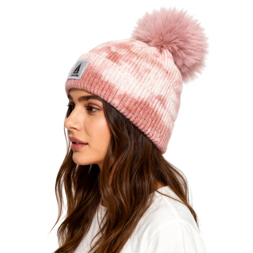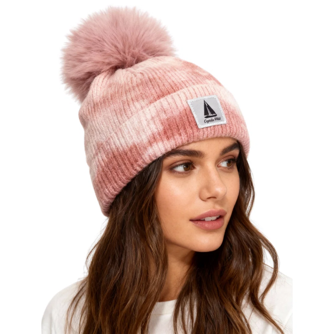 Ciepła czapka damska zimowa z pomponem efekt tie-dye różowa Captain Mike
