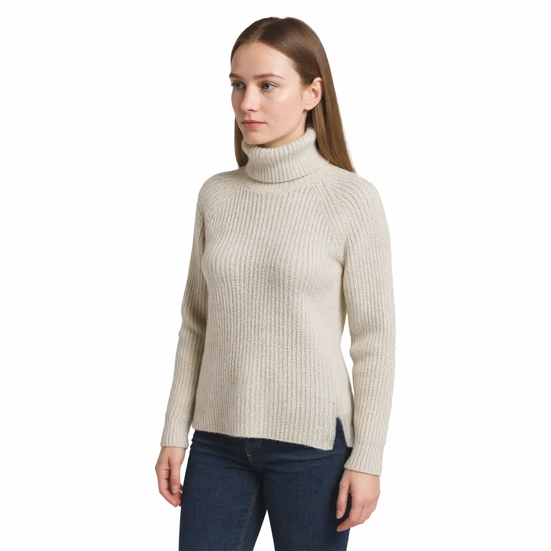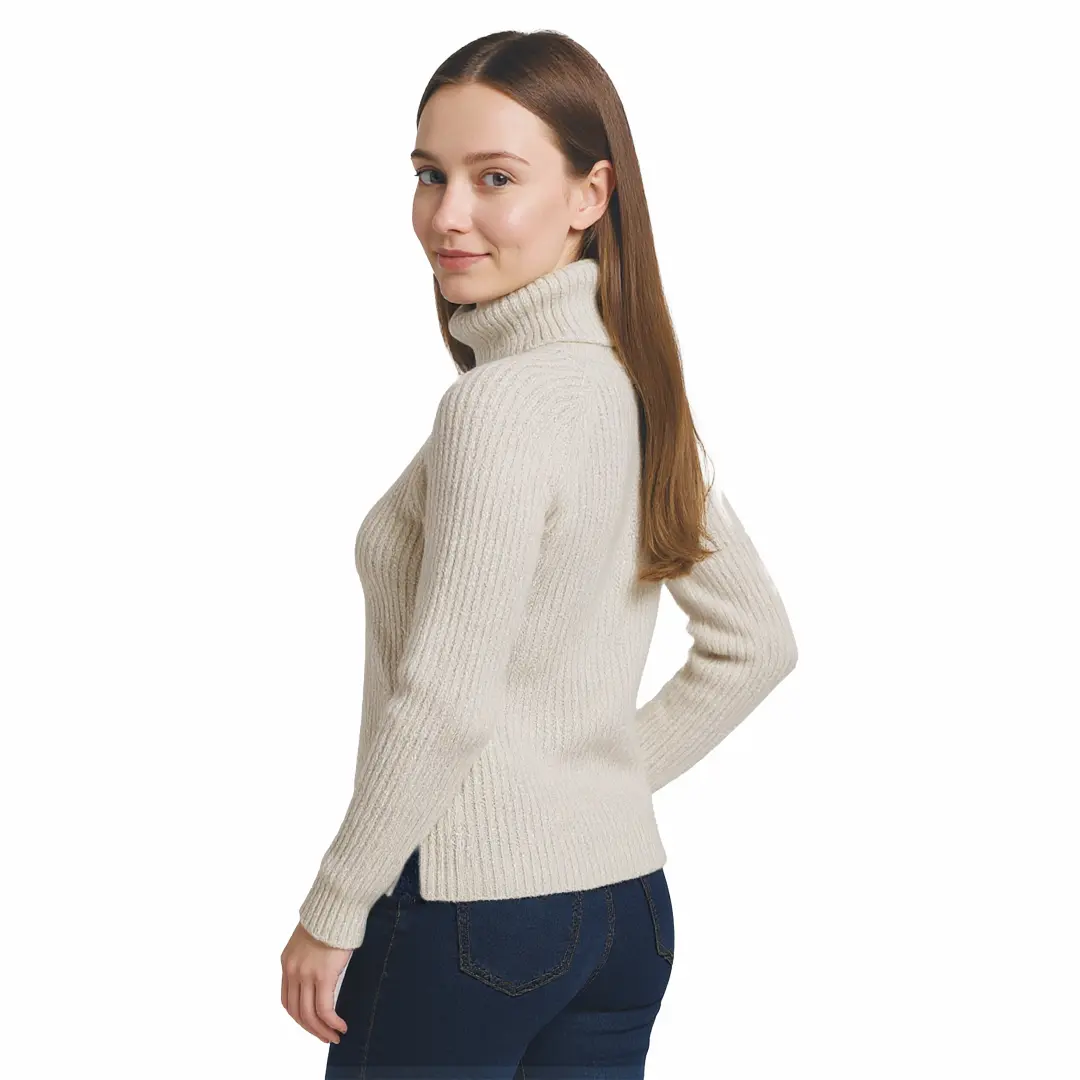 Sweter damski z golfem Captain Mike to połączenie ciepła, miękkości i elegancji – idealny na jesień i zimę. Wykonany z przędzy z dodatkiem moheru, otuli Cię w chłodne dni, zapewniając komfort i styl w każdej stylizacji.