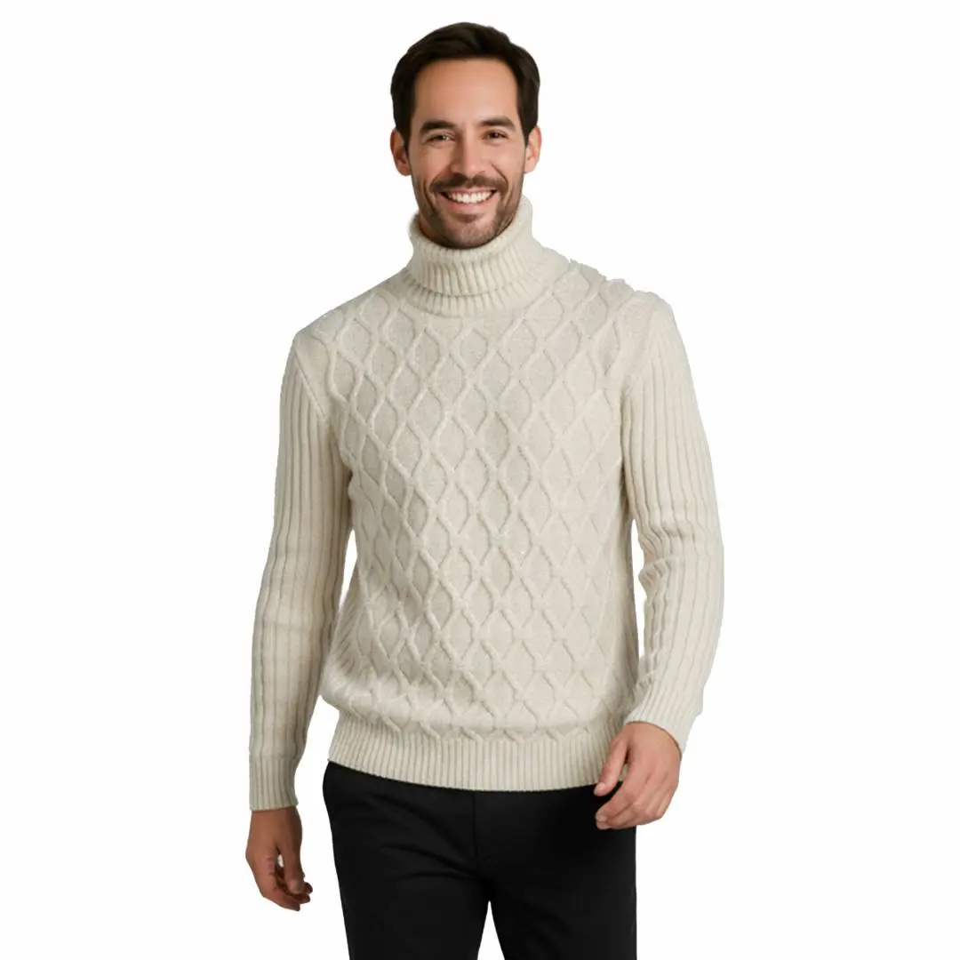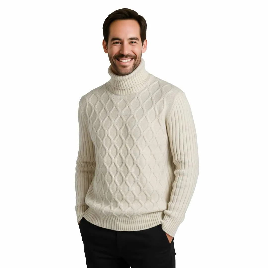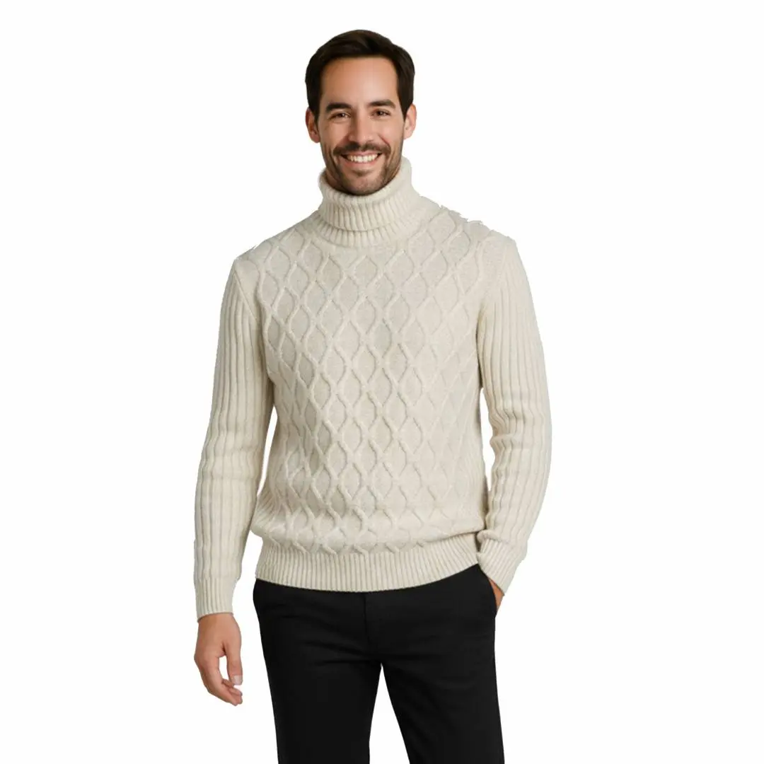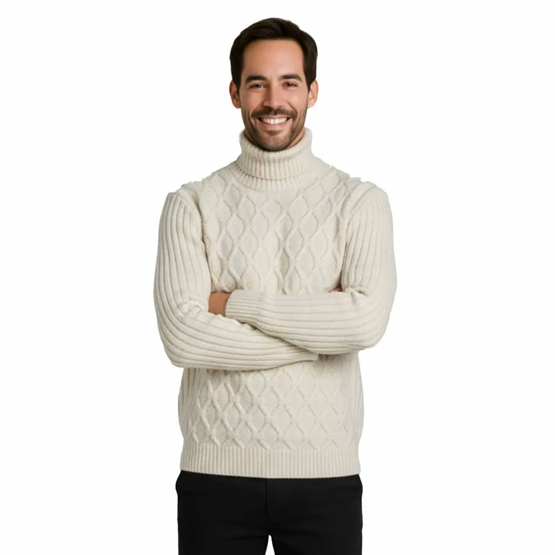 Ciepły sweter męski z golfem klasyczny ecru Captain Mike