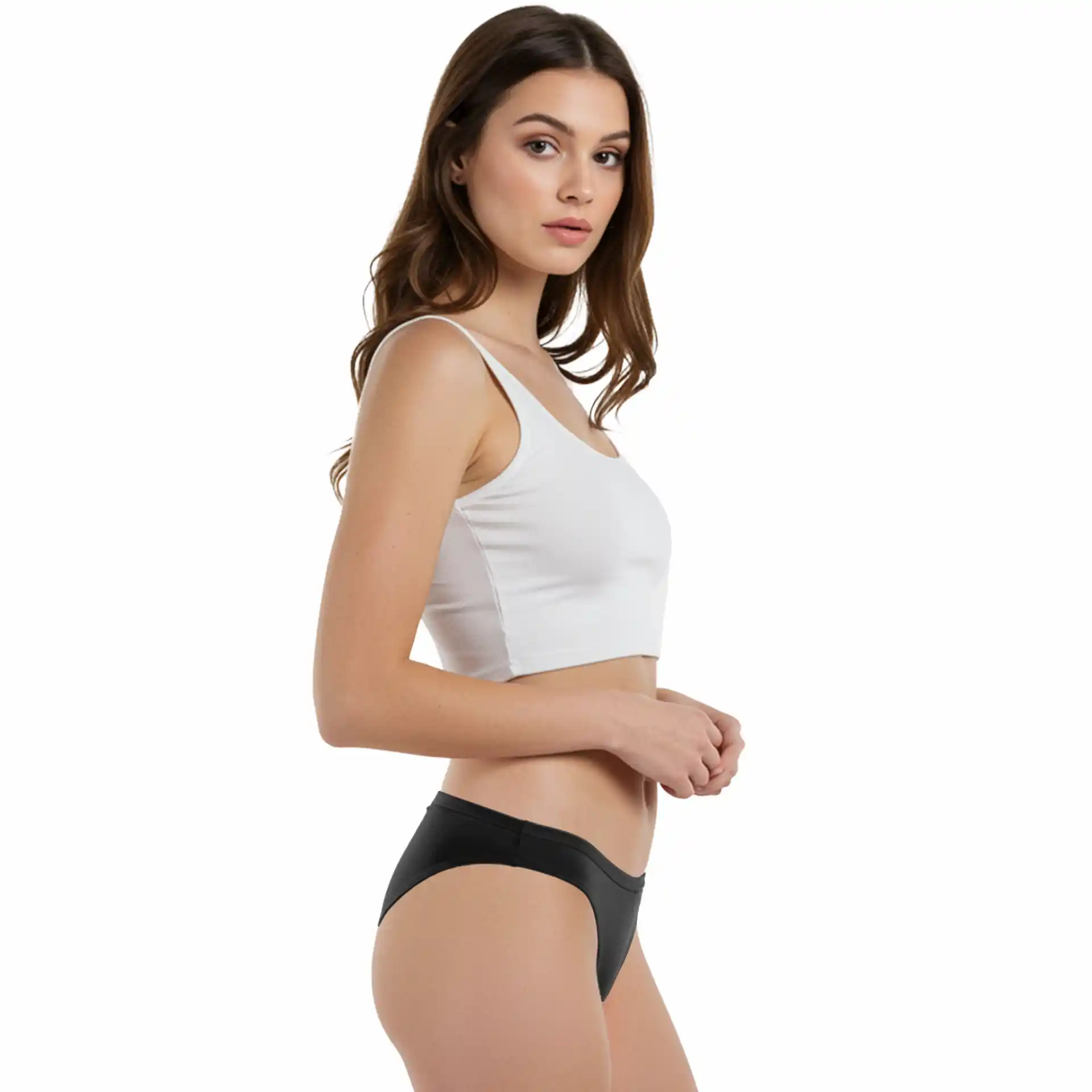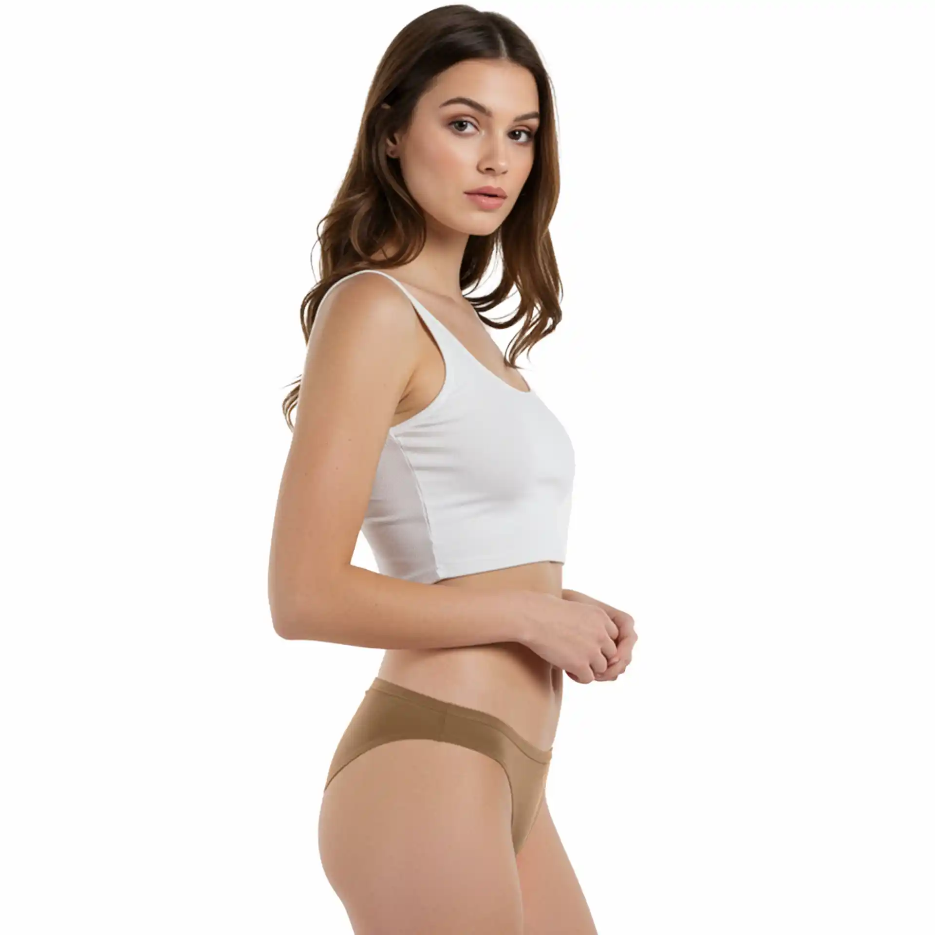 - Klasyczny, pełny krój – dobrze zakrywa pośladki, dzięki czemu bielizna nie odznacza się pod ubraniem i nie podwija się w trakcie noszenia.