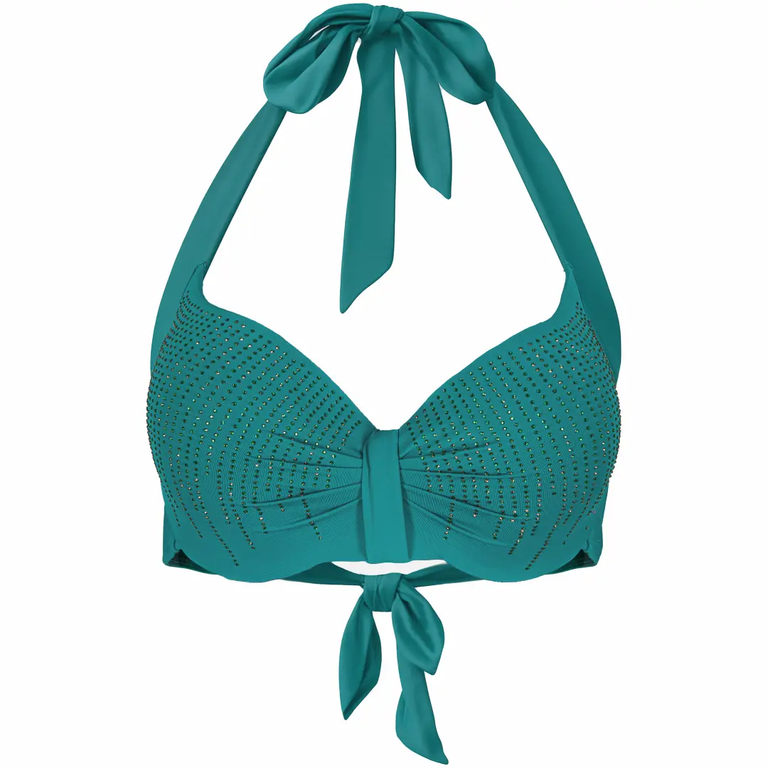 - Biustonosz wiązany na szyi i plecach, usztywniane miseczki.