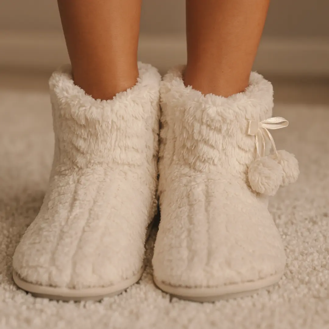 - Elegancki Design: Kremowy kolor i elegancki krój sprawiają, że kapcie te pasują do każdego domowego stroju, dodając mu klasy i stylu.