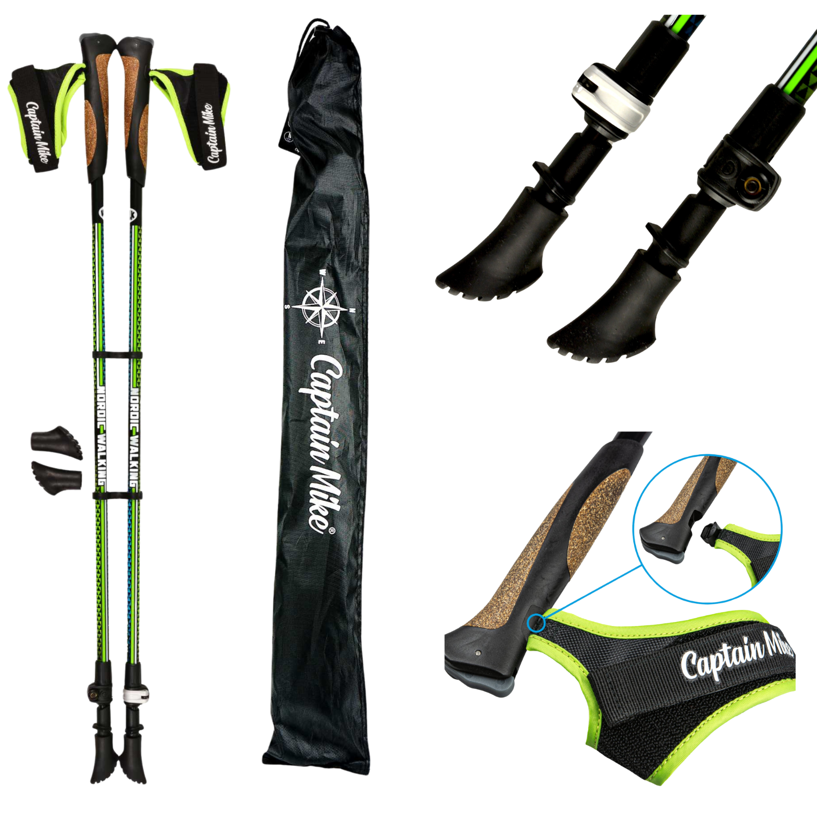 - PEWNY CHWYT - antypoślizgowa rączka z korka i uchwyty na dłonie chronią przed wypadnięciem kijka nawet gdy go puścisz