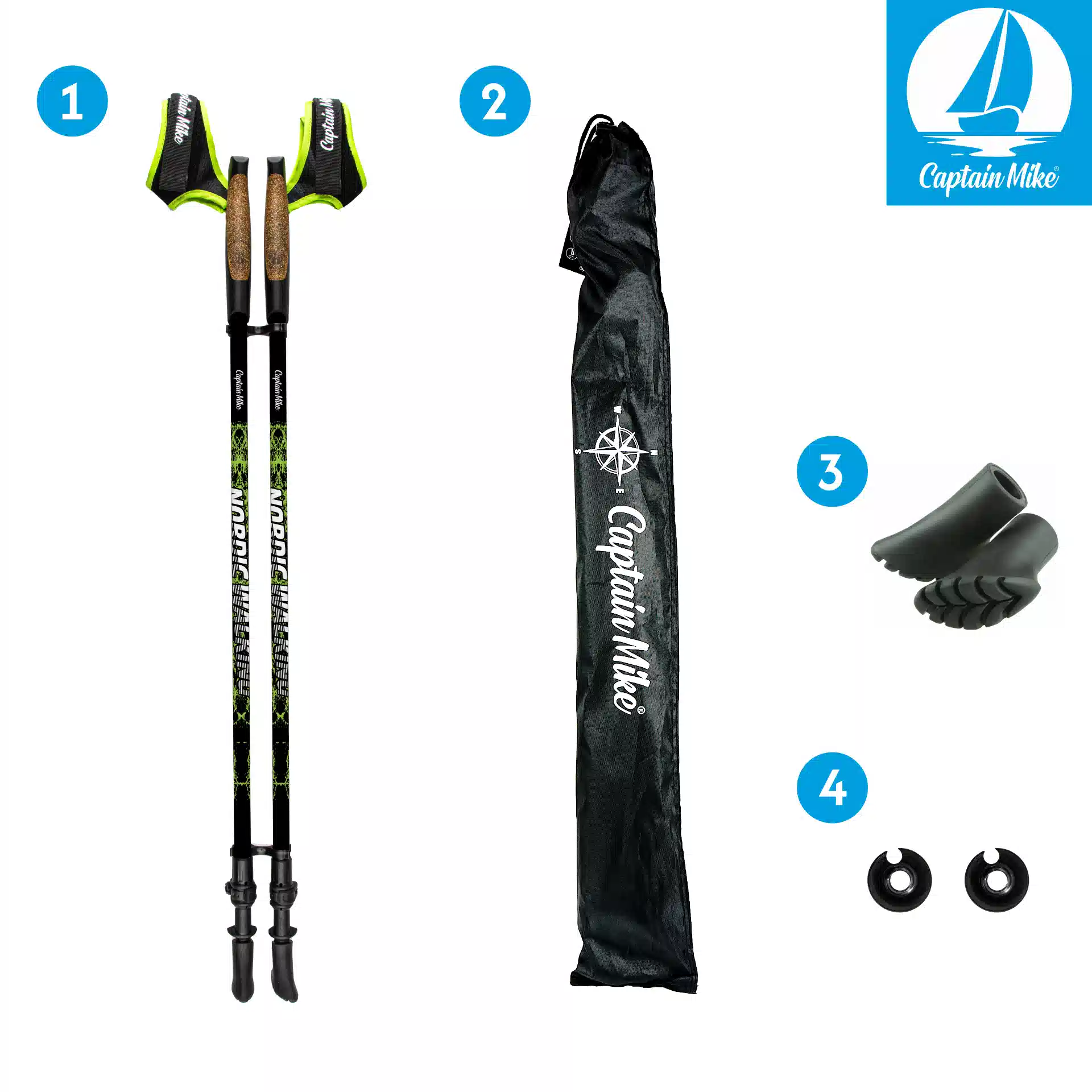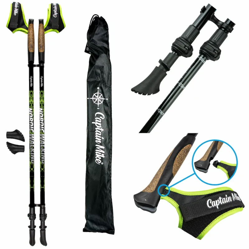 Superlekkie kijki do nordic walking Captain Mike, wykonane z wytrzymałego aluminium, idealnie sprawdzą się na każdym terenie. Regulowana długość i antypoślizgowe uchwyty z korka gwarantują wygodę oraz pewny chwyt, a składana konstrukcja ułatwia transport. Zestaw obejmuje kijki, rękawiczki, zapasowe końcówki i pokrowiec – gotowy do każdej wyprawy!