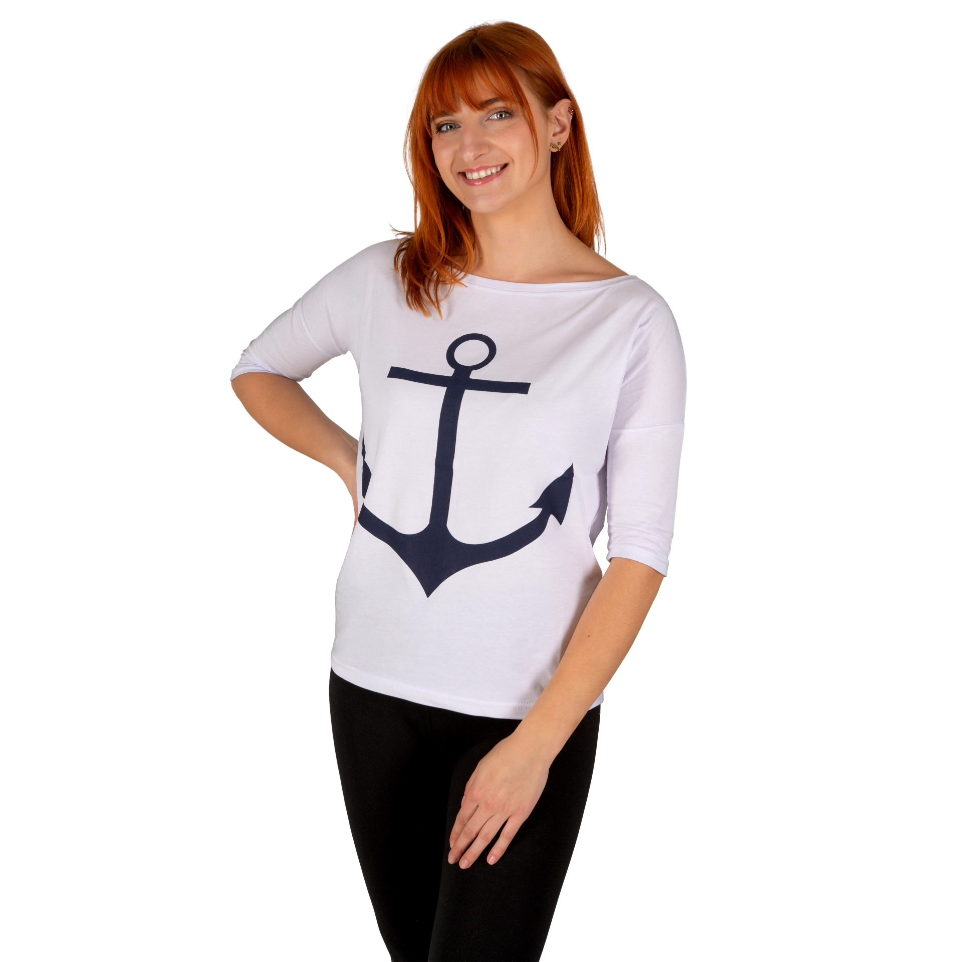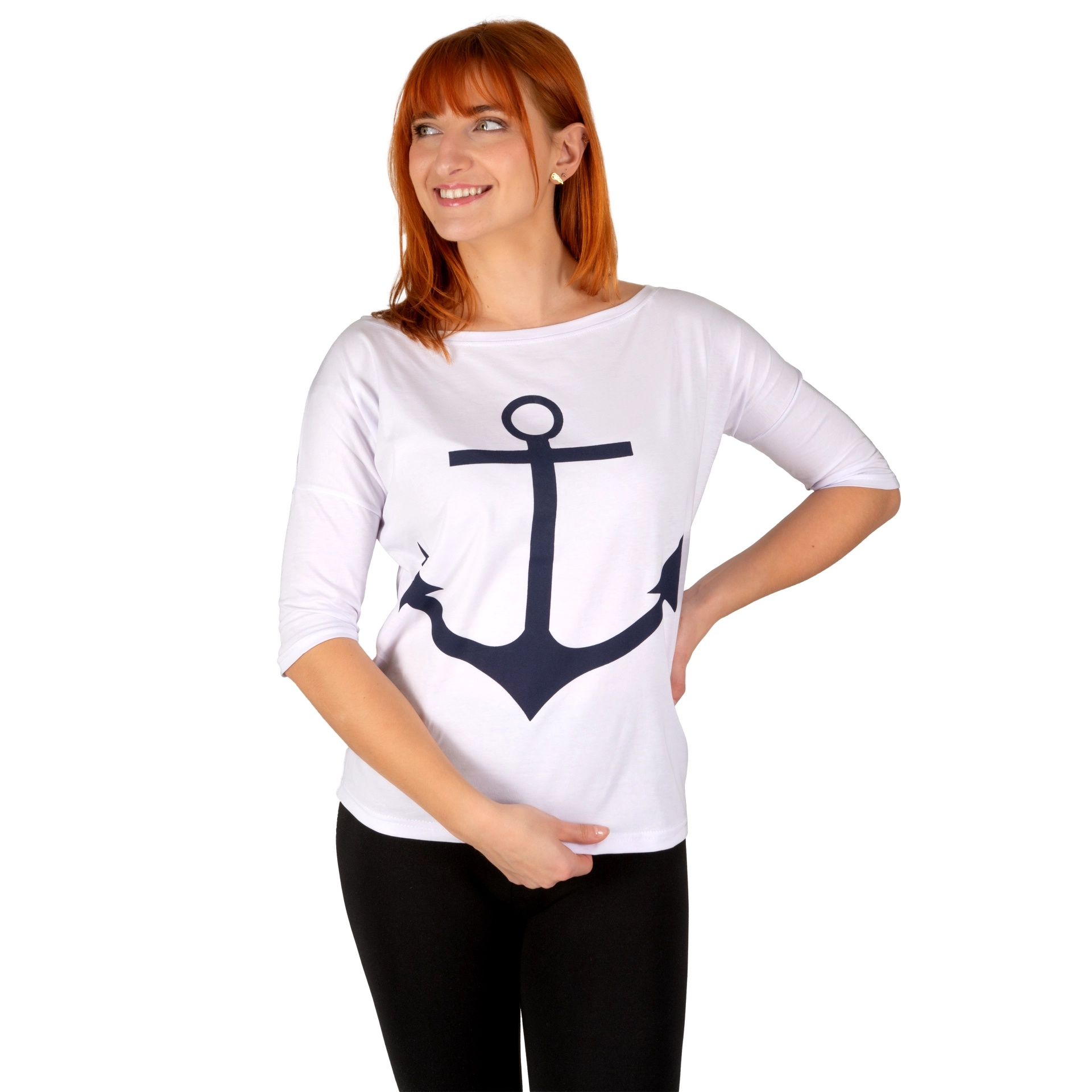Koszulka Damska Luźna biała z kotwicą BAWEŁNA TURECKA Captain Mike
