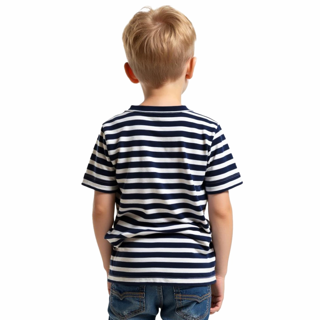 Bawełniana koszulka chłopięca z krótkim rękawem to idealna propozycja dla małych miłośników morskich przygód. Biała w granatowe paski, ozdobiona nadrukiem wesołego pirata i napisem Pirate Boy, przyciąga wzrok i dodaje dziecięcego uroku.