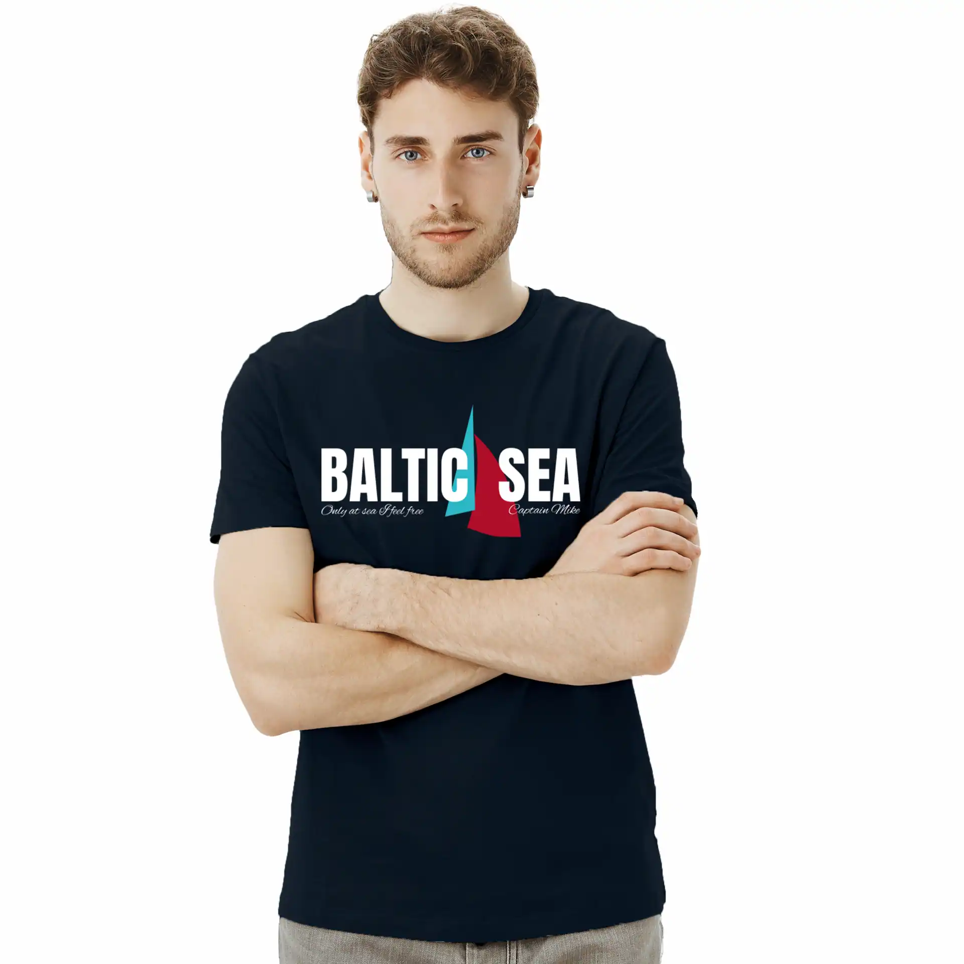 Koszulka męska BAWEŁNA TURECKA T-shirt BALTIC SEA granatowa Captain Mike