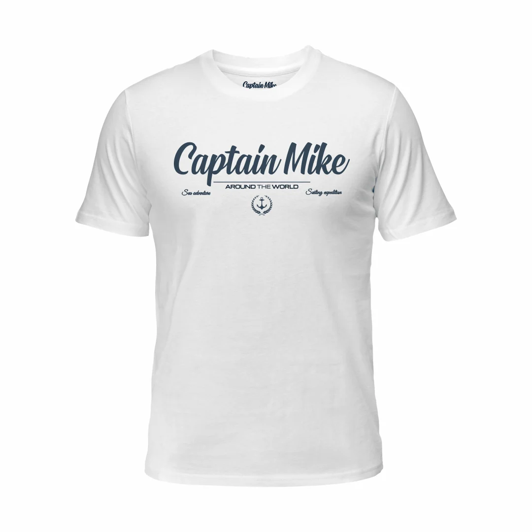 Koszulka męska BAWEŁNA TURECKA biała T-shirt z nadrukiem Captain Mike