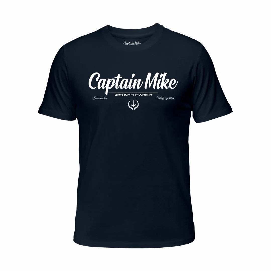 Koszulka męska BAWEŁNA TURECKA granatowa T-shirt z nadrukiem Captain Mike