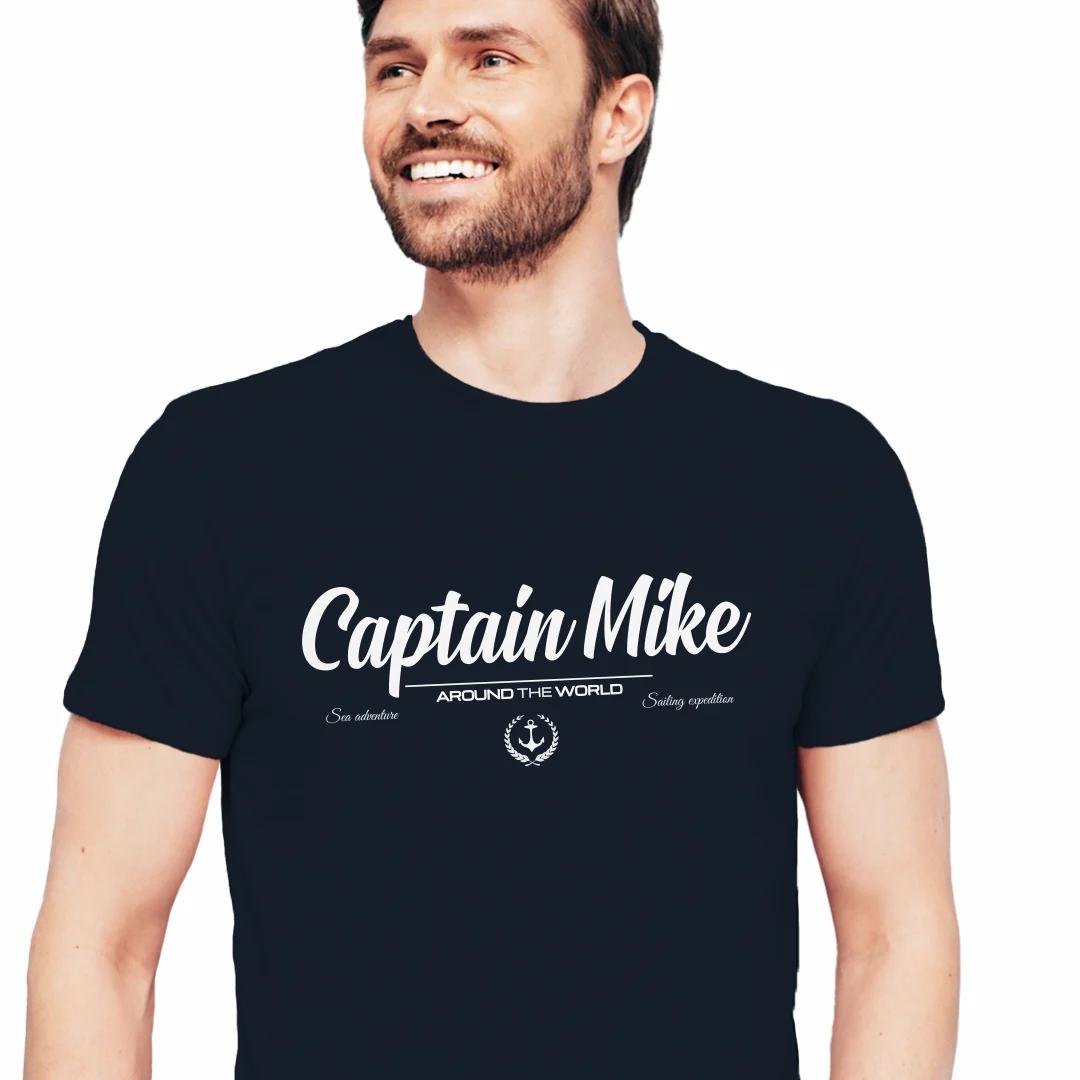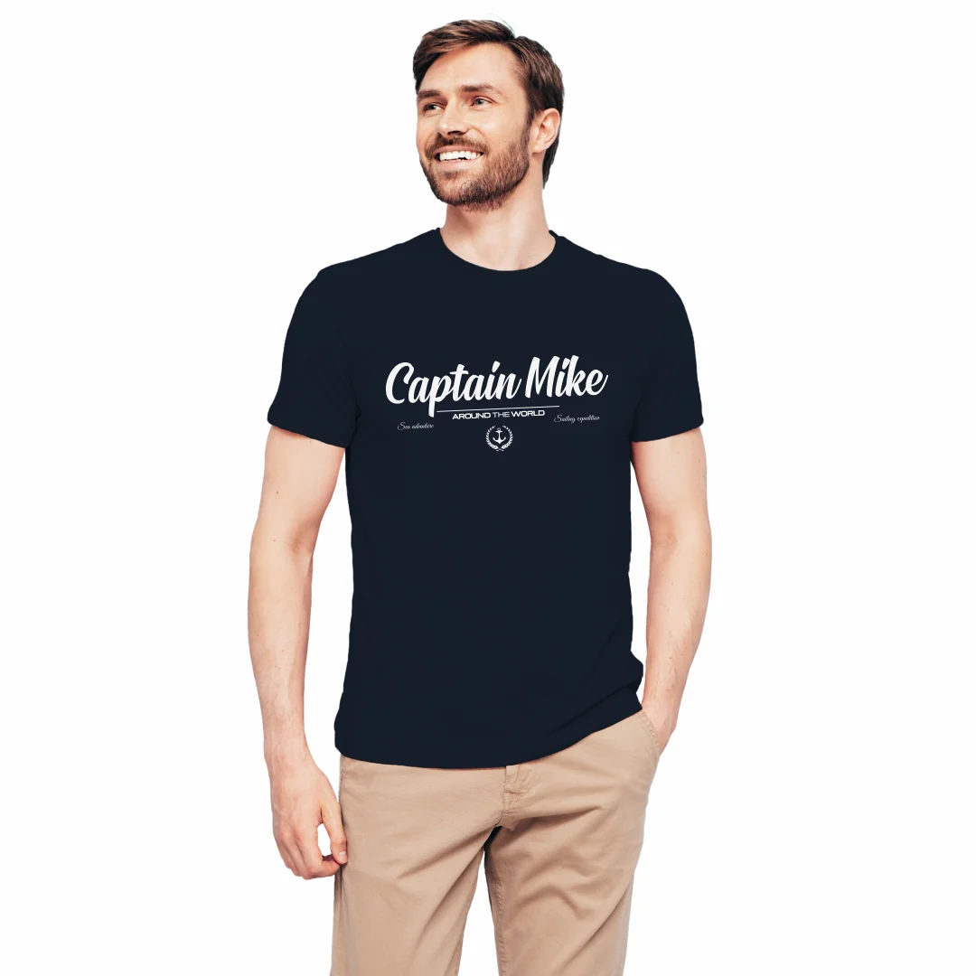 Oryginalna koszulka z nadrukiem męska, T-shirt z bawełny tureckiej 180 GSM Captain Mike.