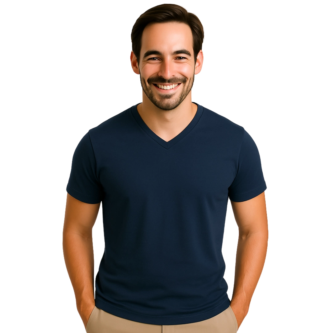 Męska koszulka granatowa V-neck – klasyka w nowoczesnym wydaniu z Captain Mike.