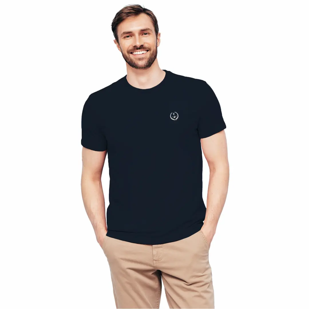 Koszulka męska Z HAFTEM BAWEŁNA TURECKA granatowa, T-shirt Captain Mike