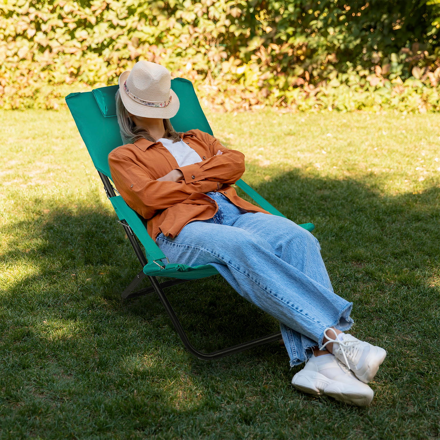 Możliwość regulacji pochylenia oparcia i odpinana poduszka pozwalają dopasować leżak dla twojej wygody!