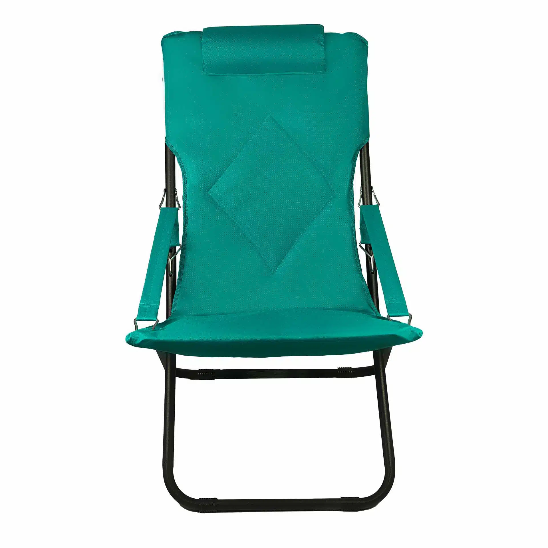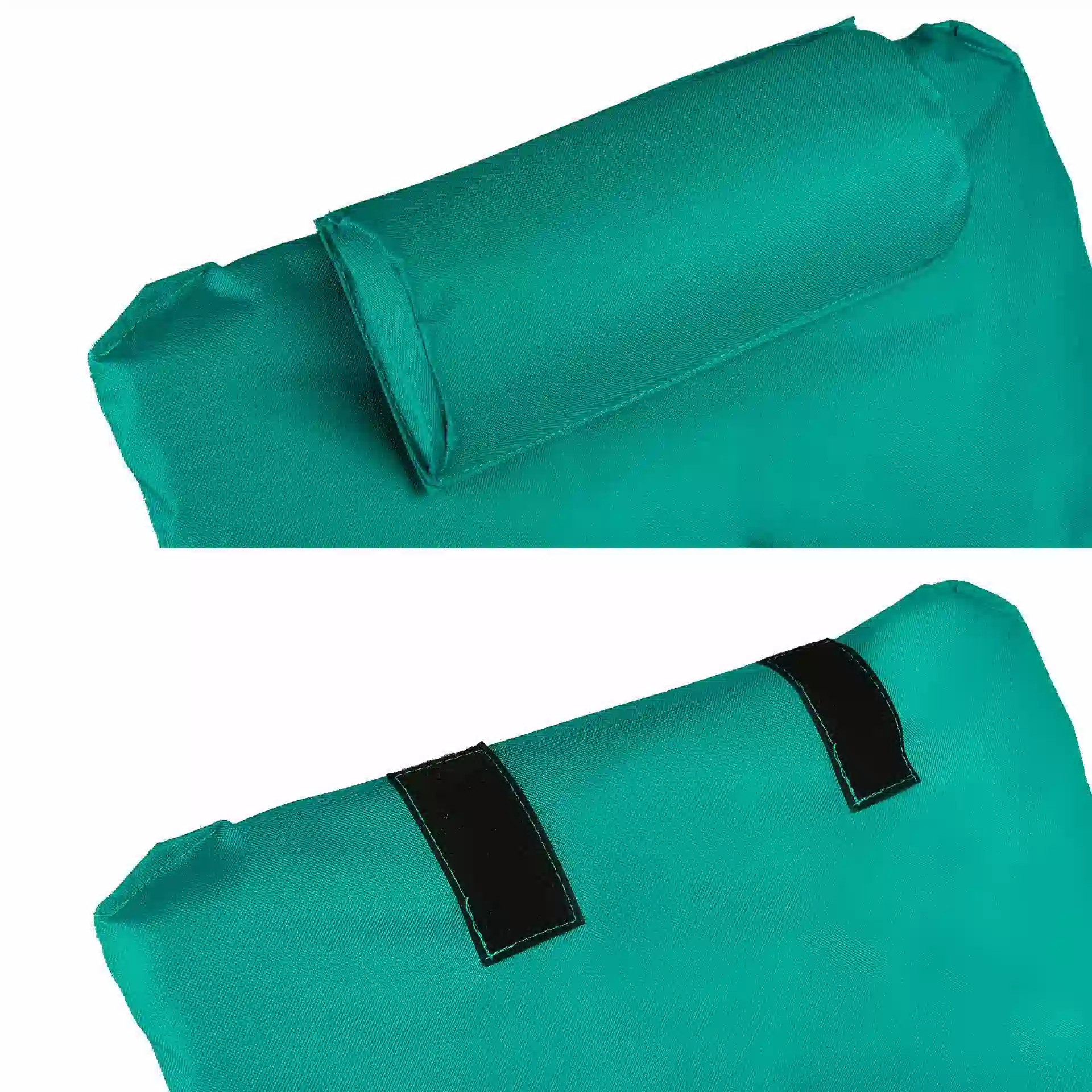 Wygodny i lekki leżak turystyczny, idealny na plażę, camping, do ogrodu czy na taras. Wyposażony w solidny stalowy stelaż oraz trwały materiał w modnym turkusowym kolorze. Ergonomiczny kształt zapewnia komfort wypoczynku, a dodatkowy zagłówek zwiększa wygodę podczas długiego siedzenia lub leżenia.