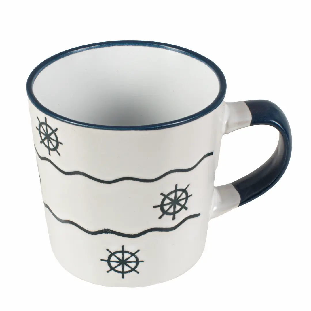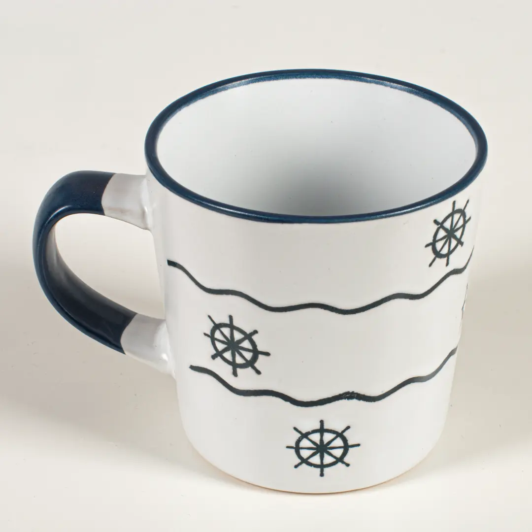 Kubek kamionkowy ceramiczny biały z motywem koła sterowego Captain Mike 350 ml
