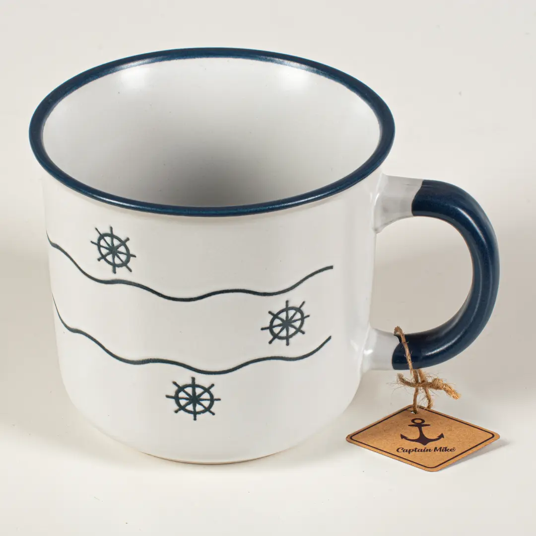 Kubek kamionkowy ceramiczny biały z motywem koła sterowego Captain Mike 400 ml