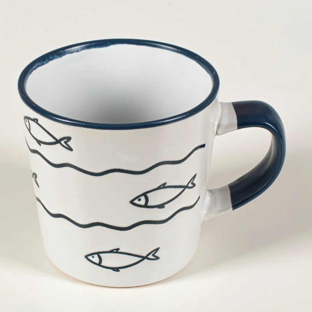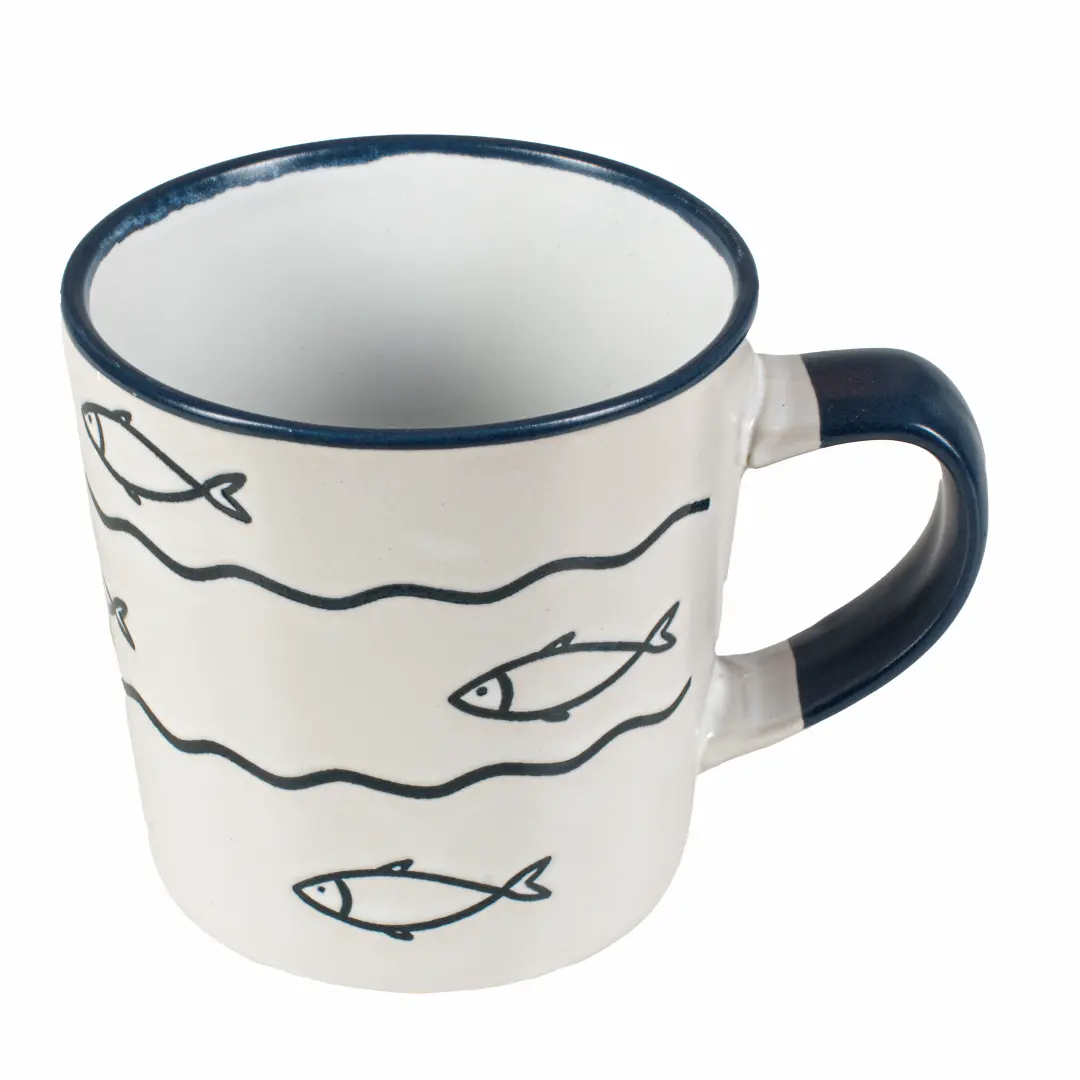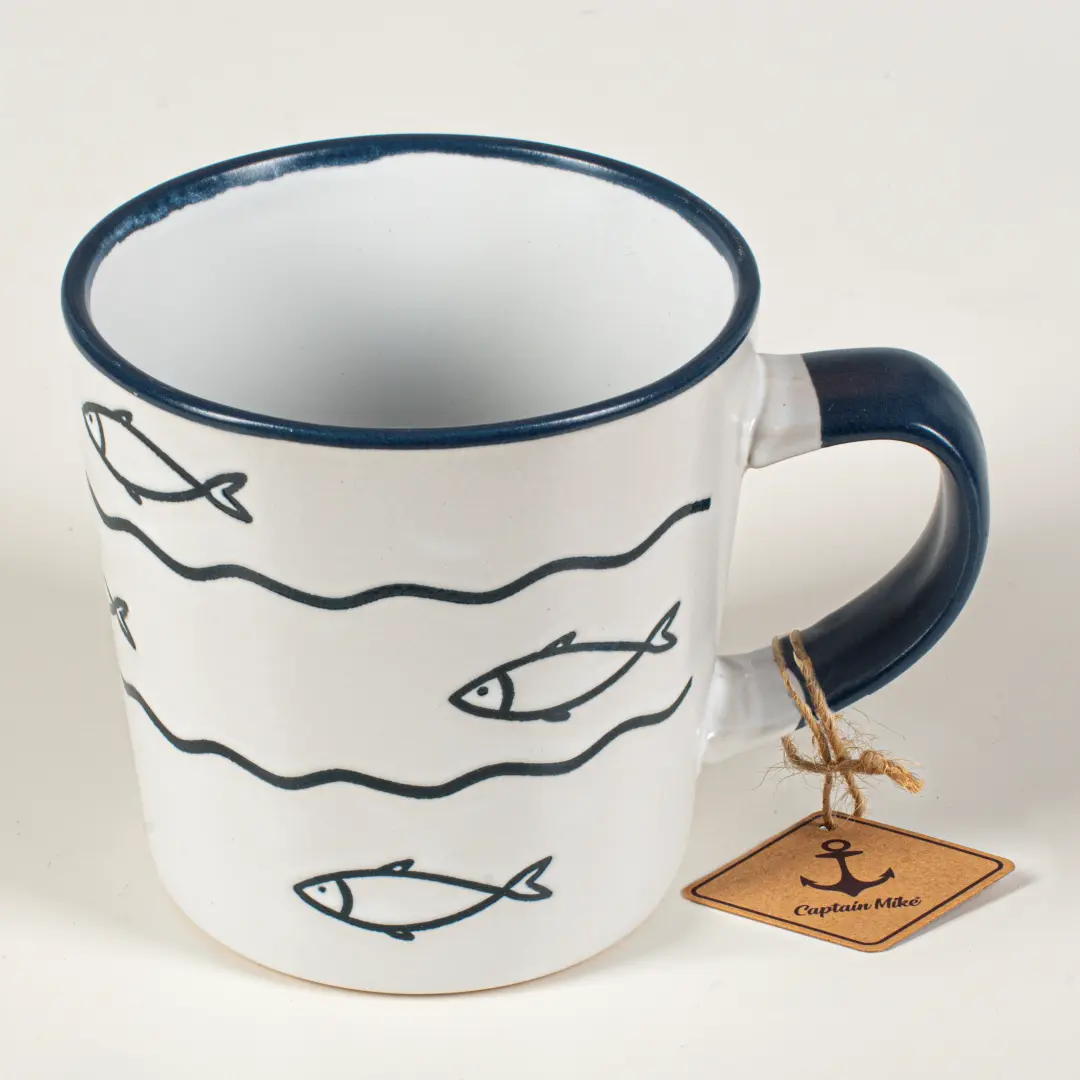 Kubek kamionkowy ceramiczny biały z motywem rybek Captain Mike 350 ml