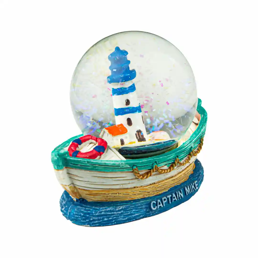Kula śnieżna z motywem latarni morskiej – unikalna Pamiątka Captain Mike.