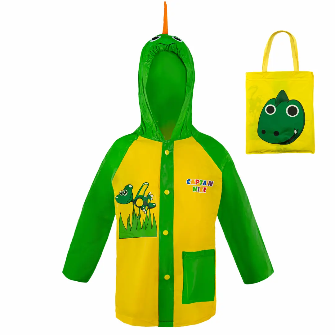 Dziecięca Kurtka Przeciwdeszczowa z Motywem Dinozaura + Pokrowiec - Stylowa Ochrona Przed Deszczem z Captain Mike.