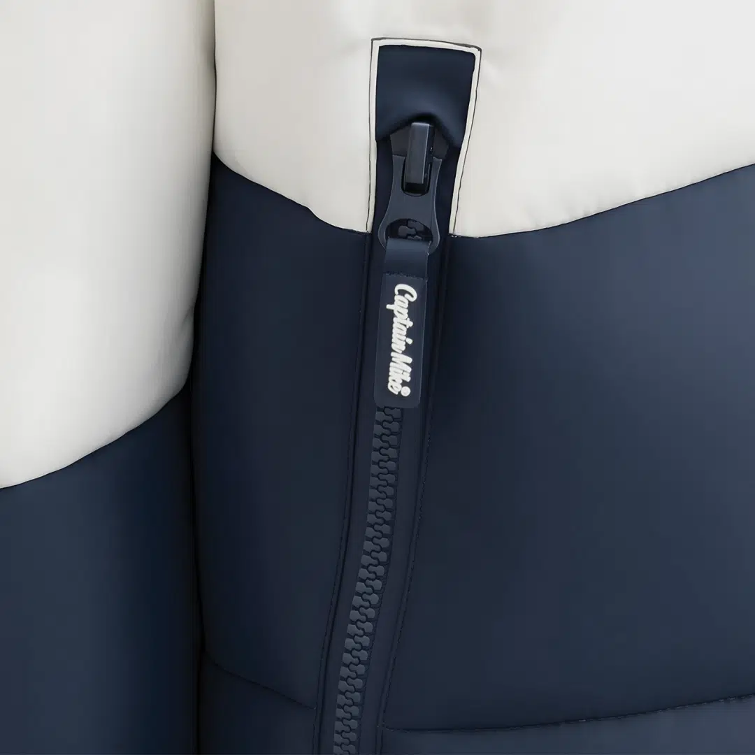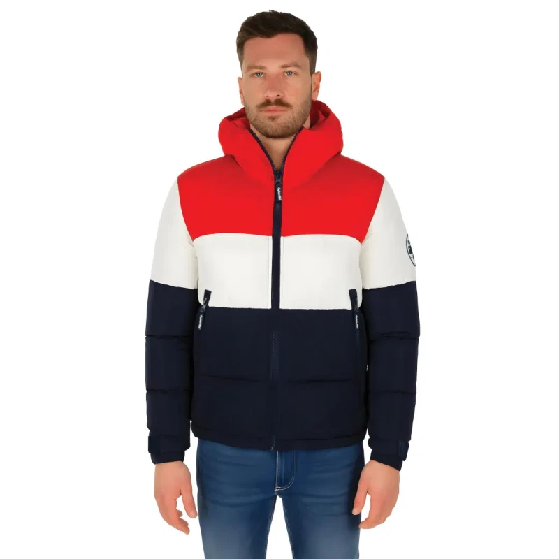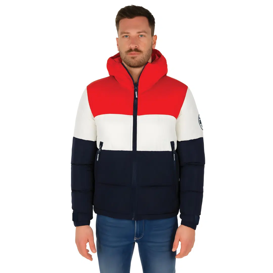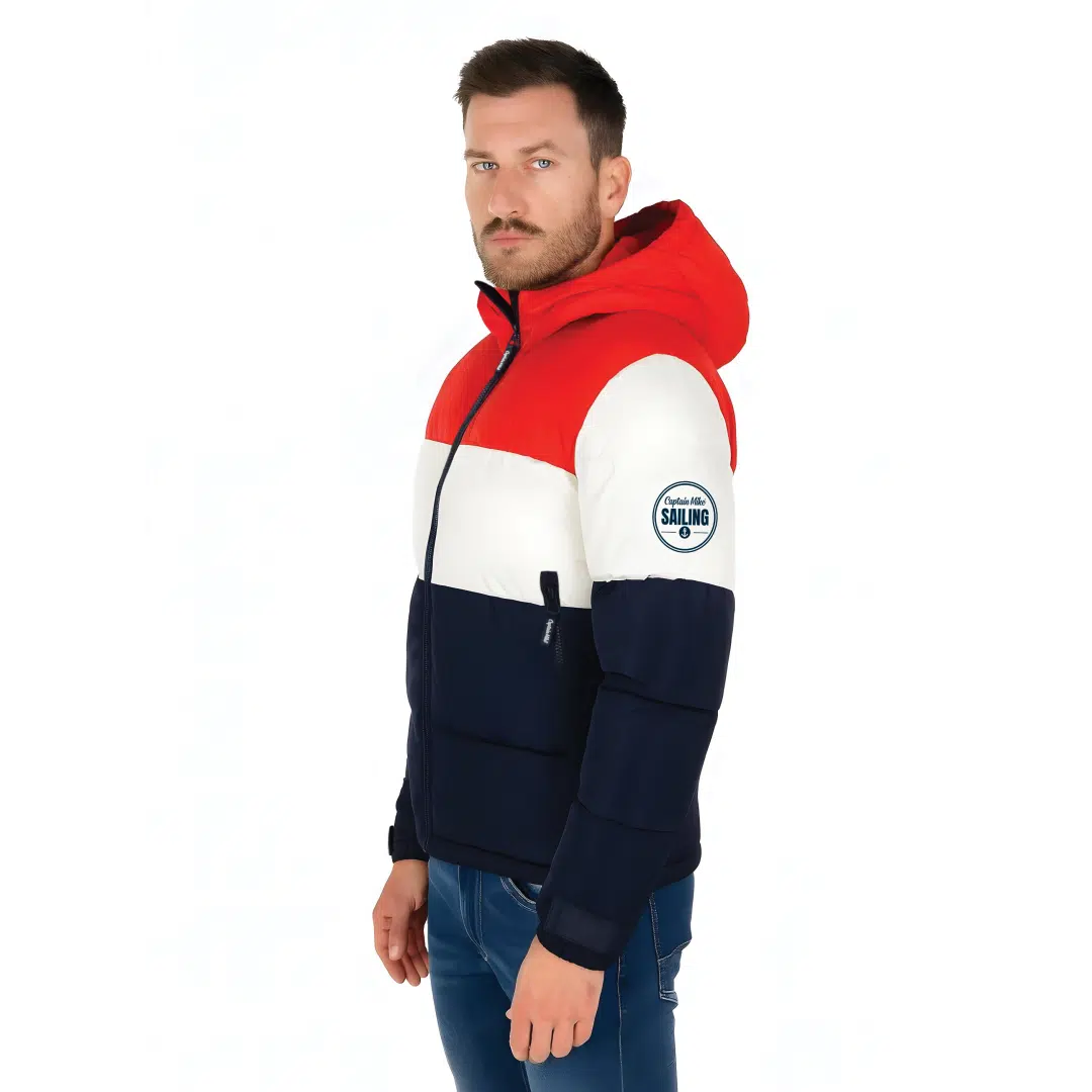 Zimowa Kurtka Puchowa Captain Mike Sailing – Trójkolorowa, z kapturem.