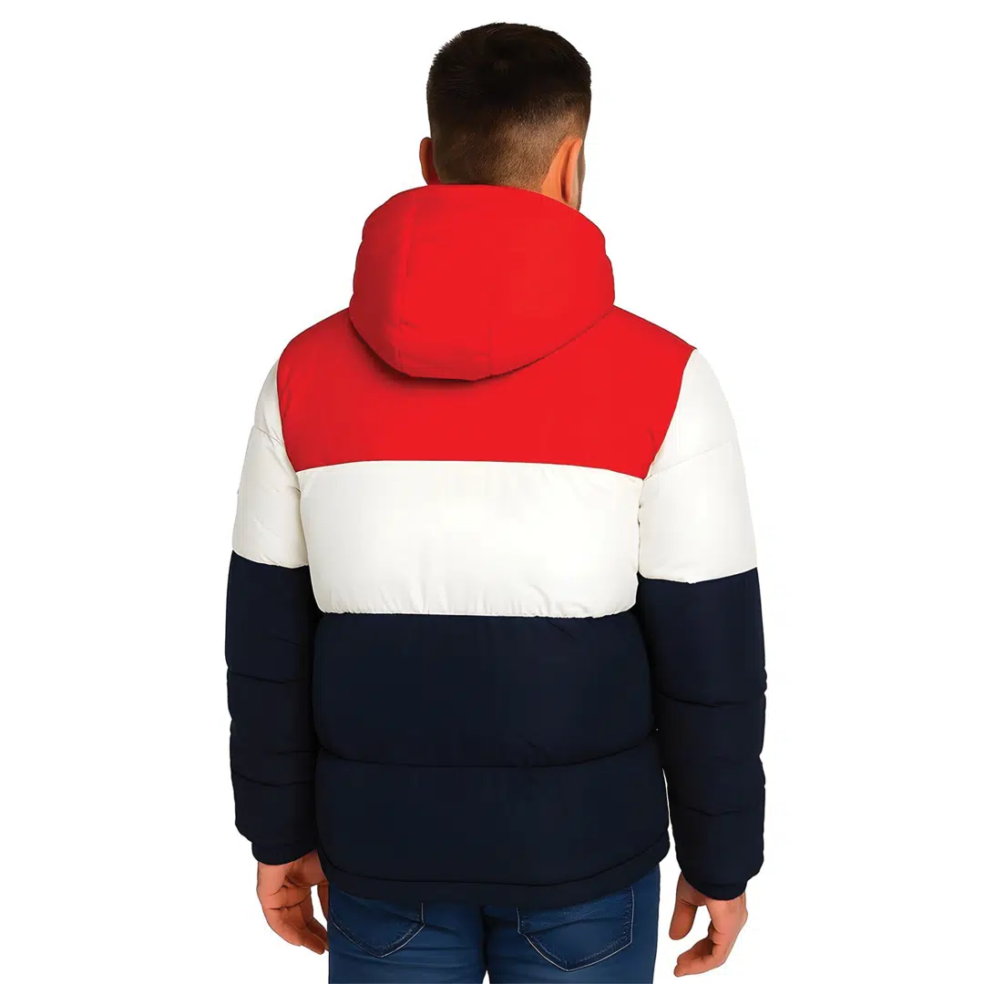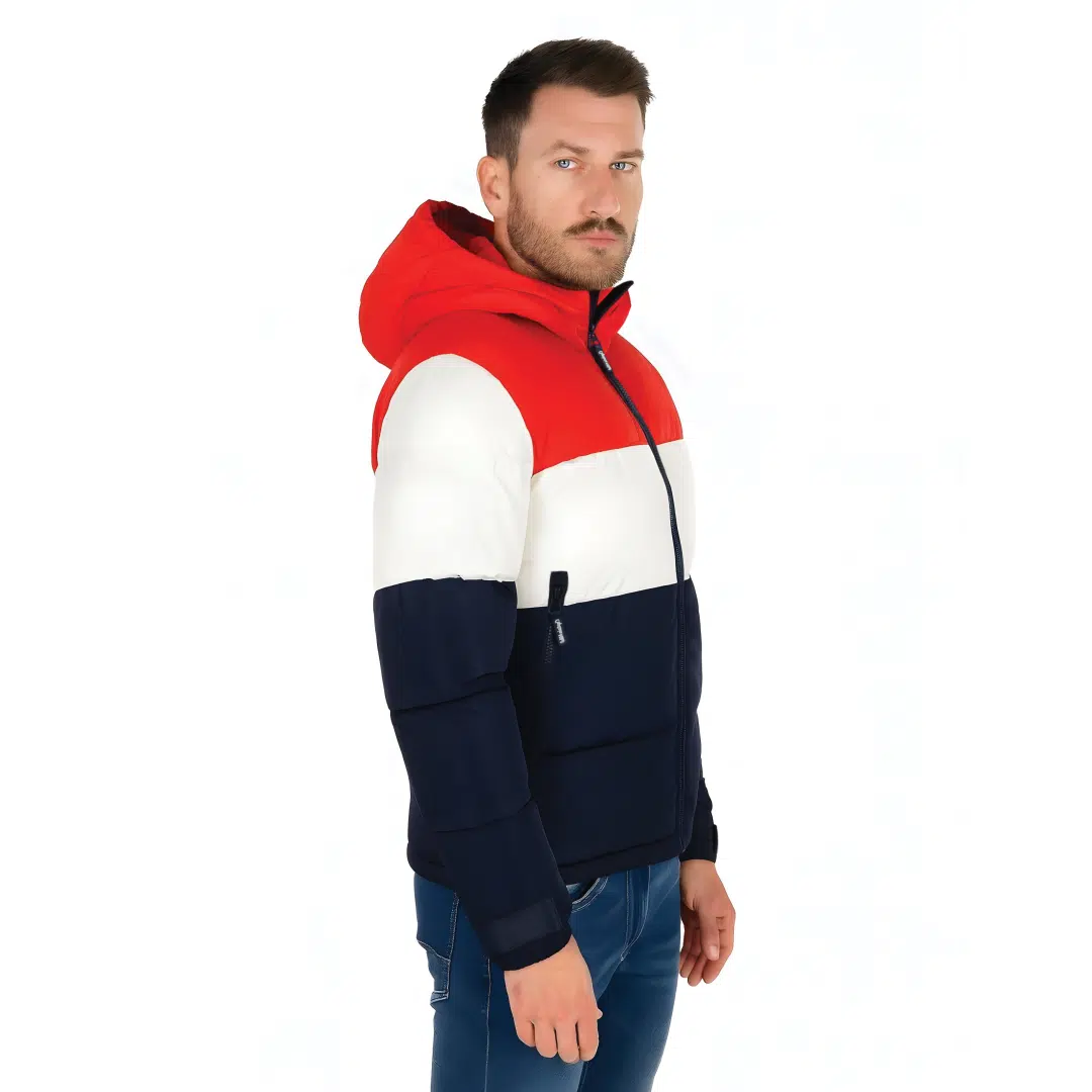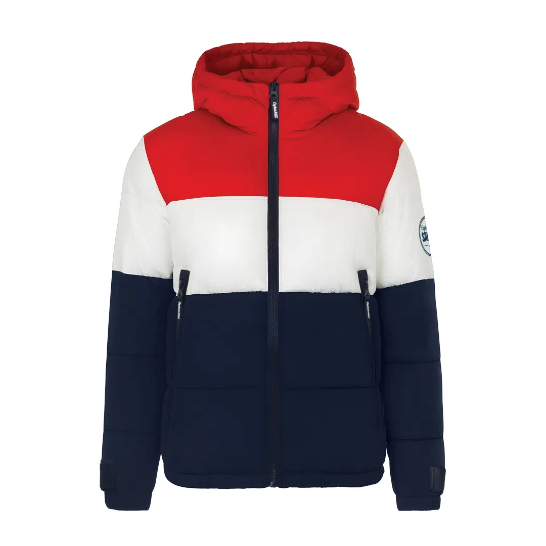 Zimowa Kurtka Puchowa Captain Mike Sailing – Trójkolorowa, z kapturem.