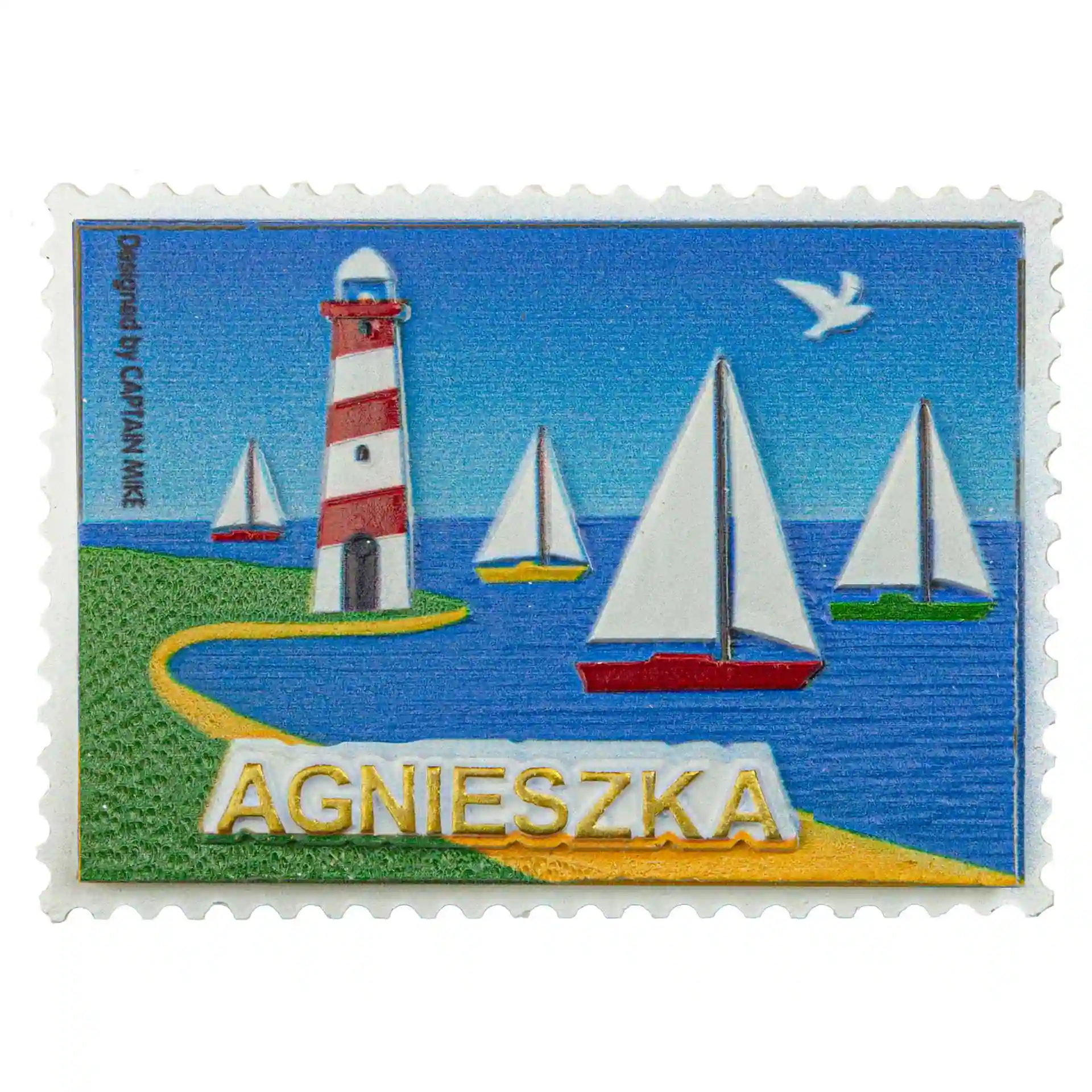 Magnes imiennym AGNIESZKA w kształcie znaczka pocztowego Captain Mike.