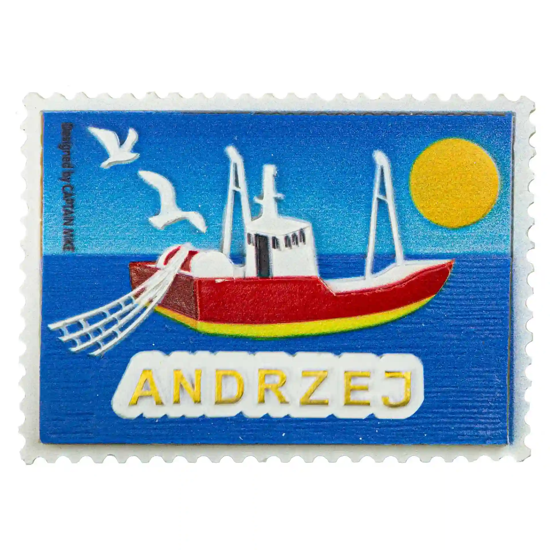 Magnes Imienny w Kształcie Znaczka Pocztowego z Motywem Morskim ANDRZEJ