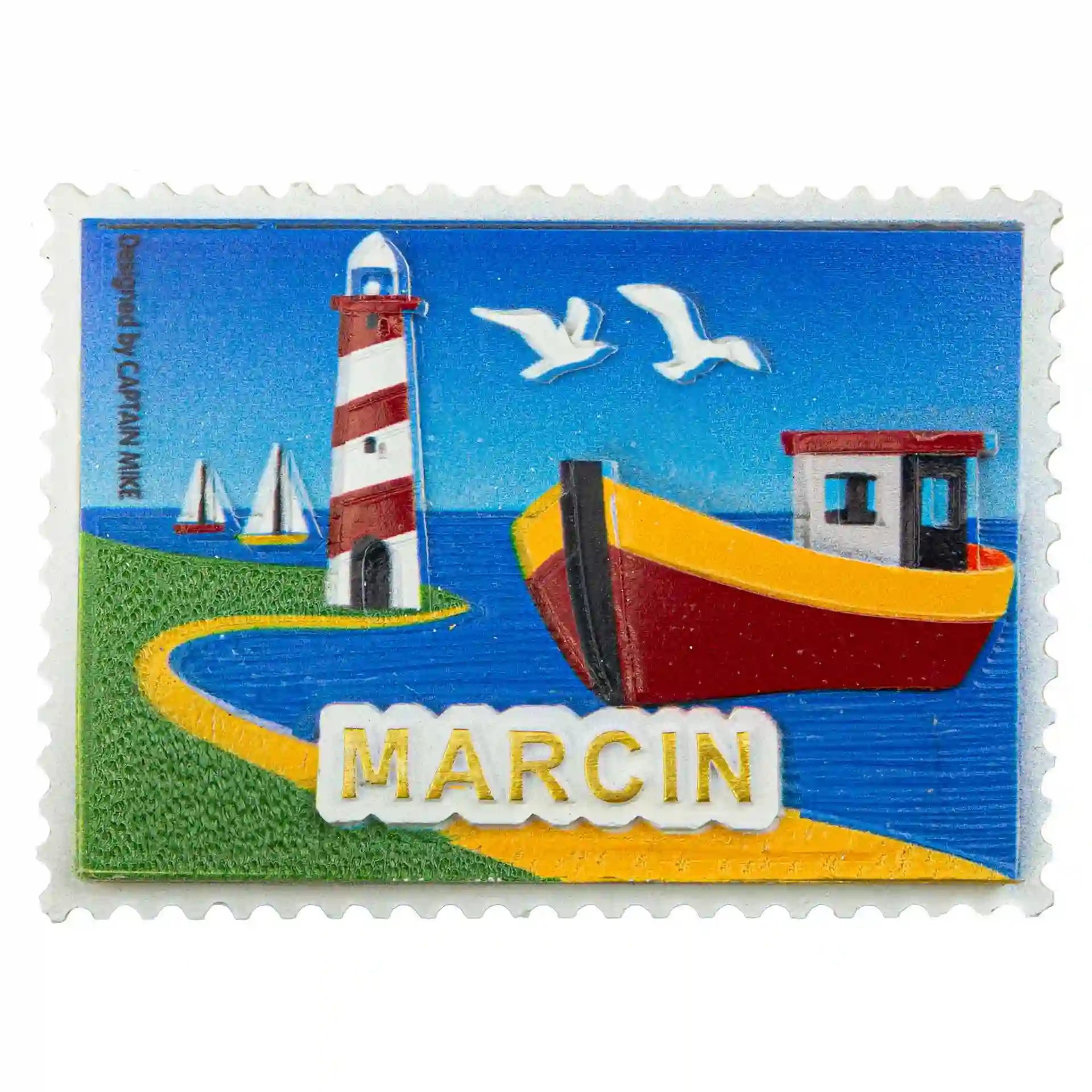 Magnes Imienny w Kształcie Znaczka Pocztowego z Motywem Morskim MARCIN