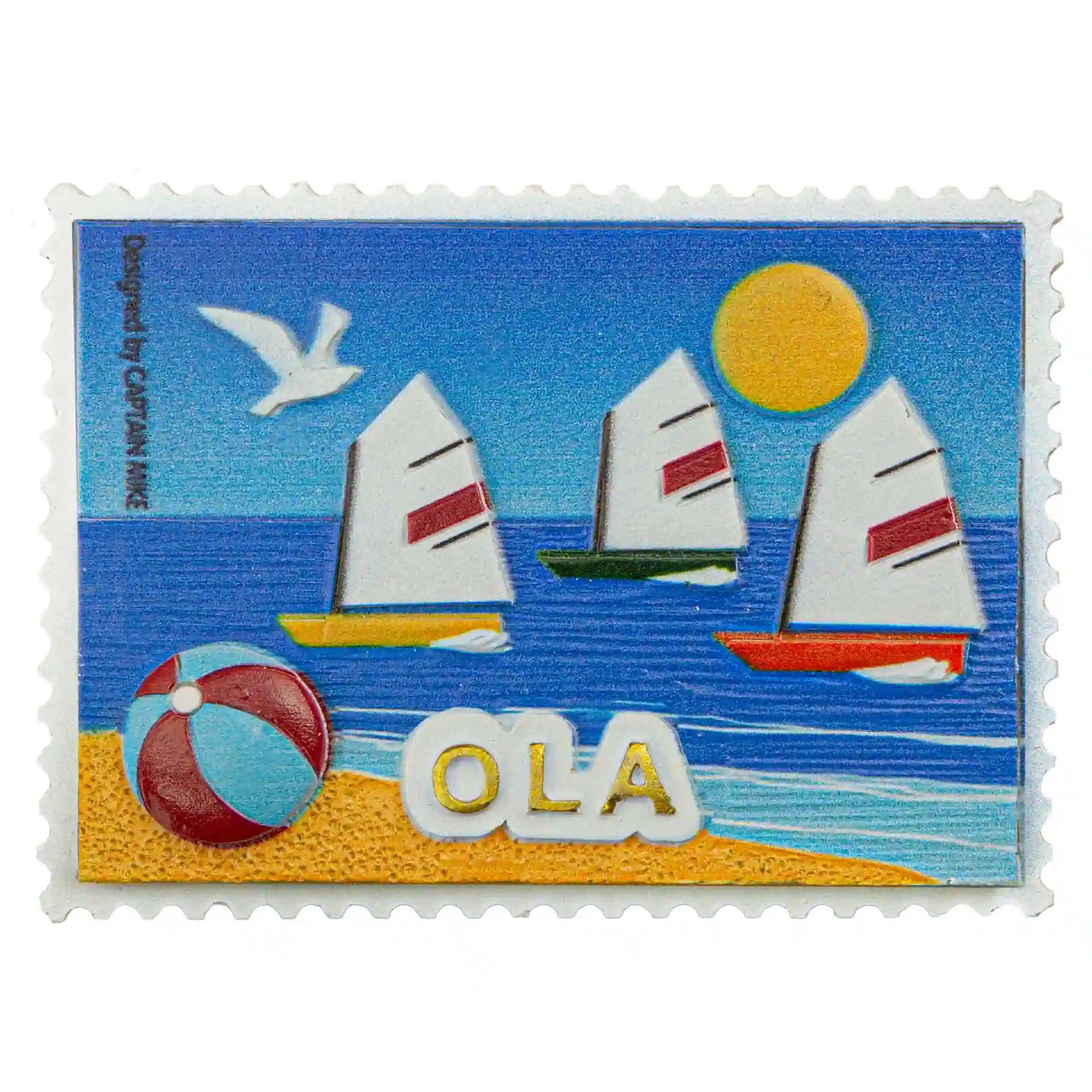 Magnes imiennym OLA w kształcie znaczka pocztowego Captain Mike.