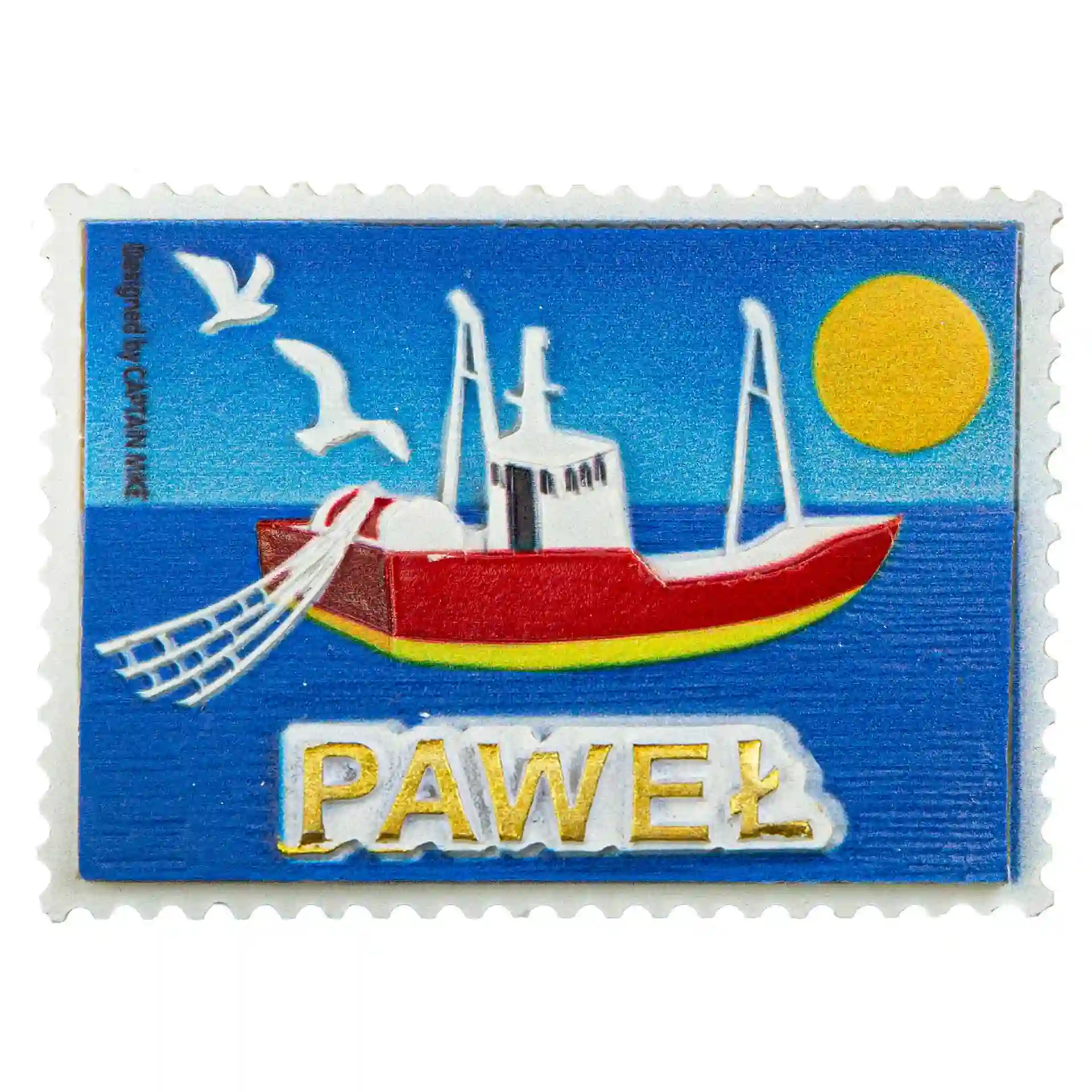 Magnes Imienny w Kształcie Znaczka Pocztowego z Motywem Morskim PAWEŁ