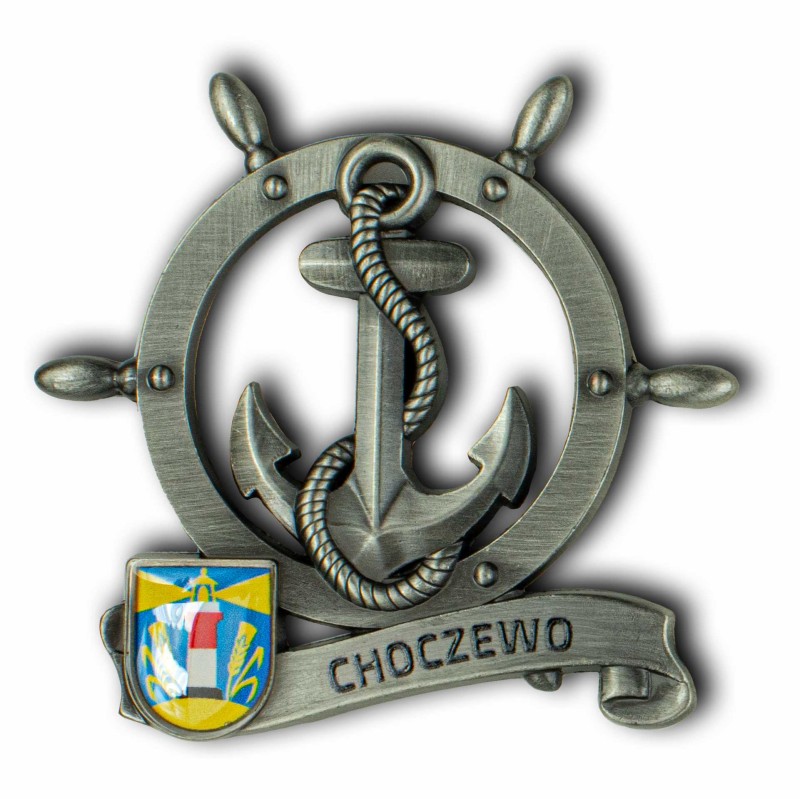 Metalowy Magnes Koło Sterowe Choczewo – Unikalna Pamiątka Captain Mike.