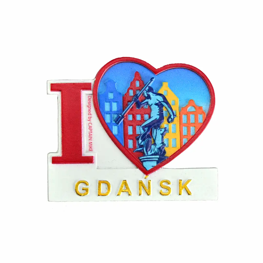 Magnes na lodówkę Pamiątka Serce I LOVE GDAŃSK Captain Mike