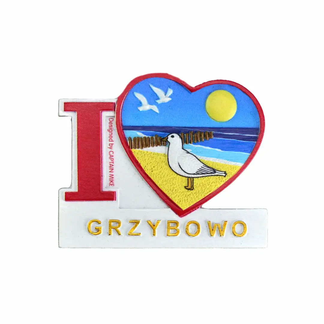Magnes na lodówkę Pamiątka Serce I LOVE GRZYBOWO Captain Mike