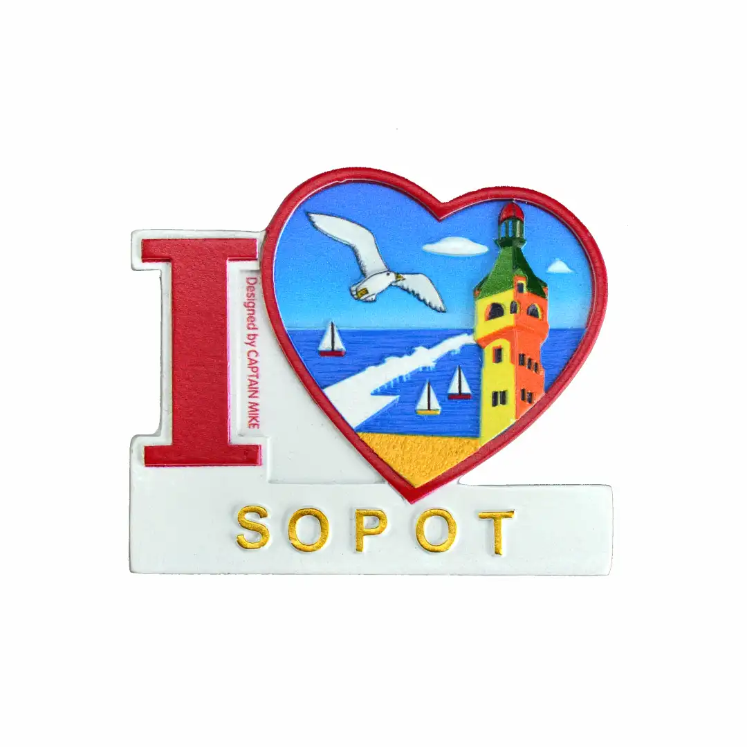 Magnes na lodówkę Pamiątka Serce I LOVE SOPOT Captain Mike