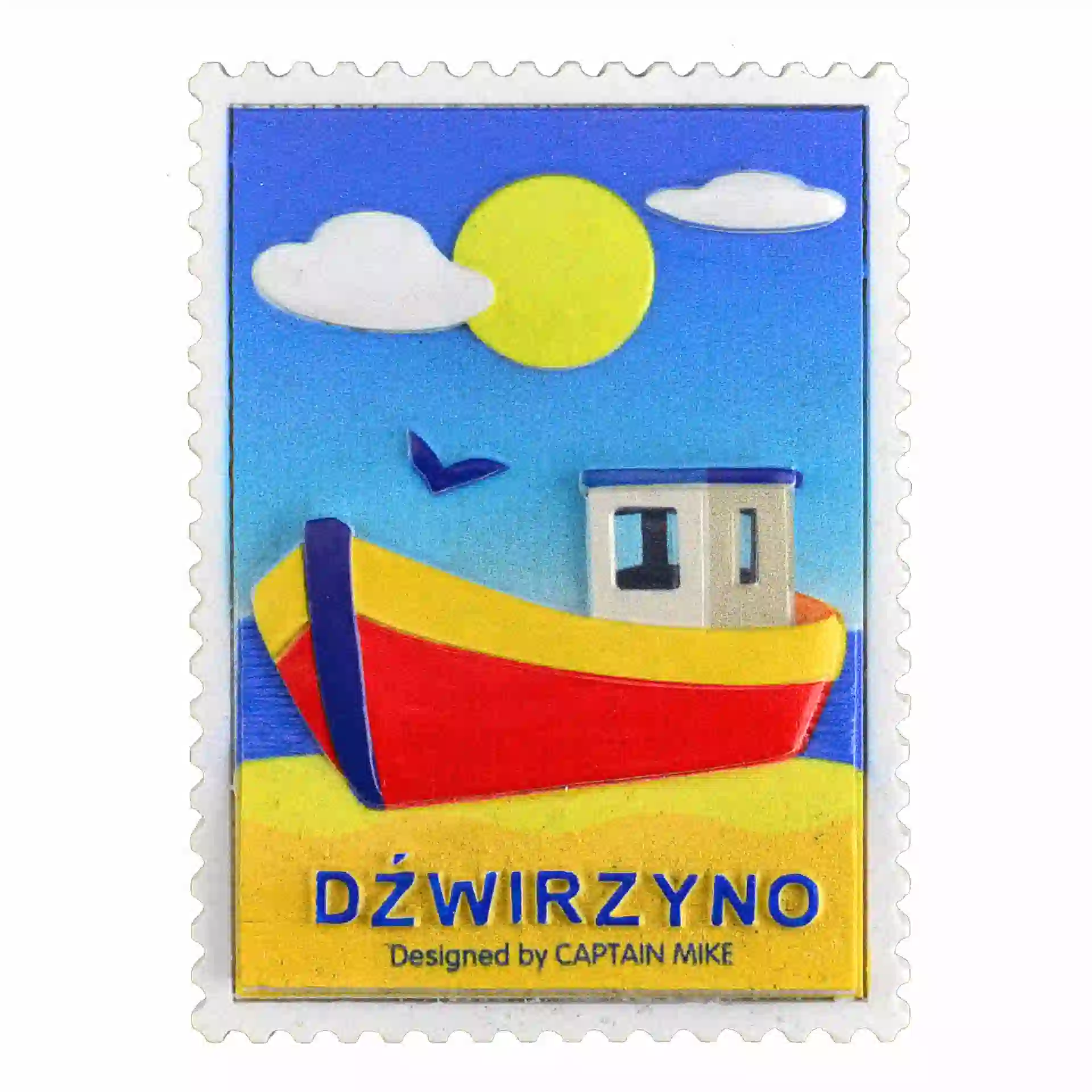 Magnes w Kształcie Znaczka Pocztowego z Motywem Morskim DŹWIRZYNO