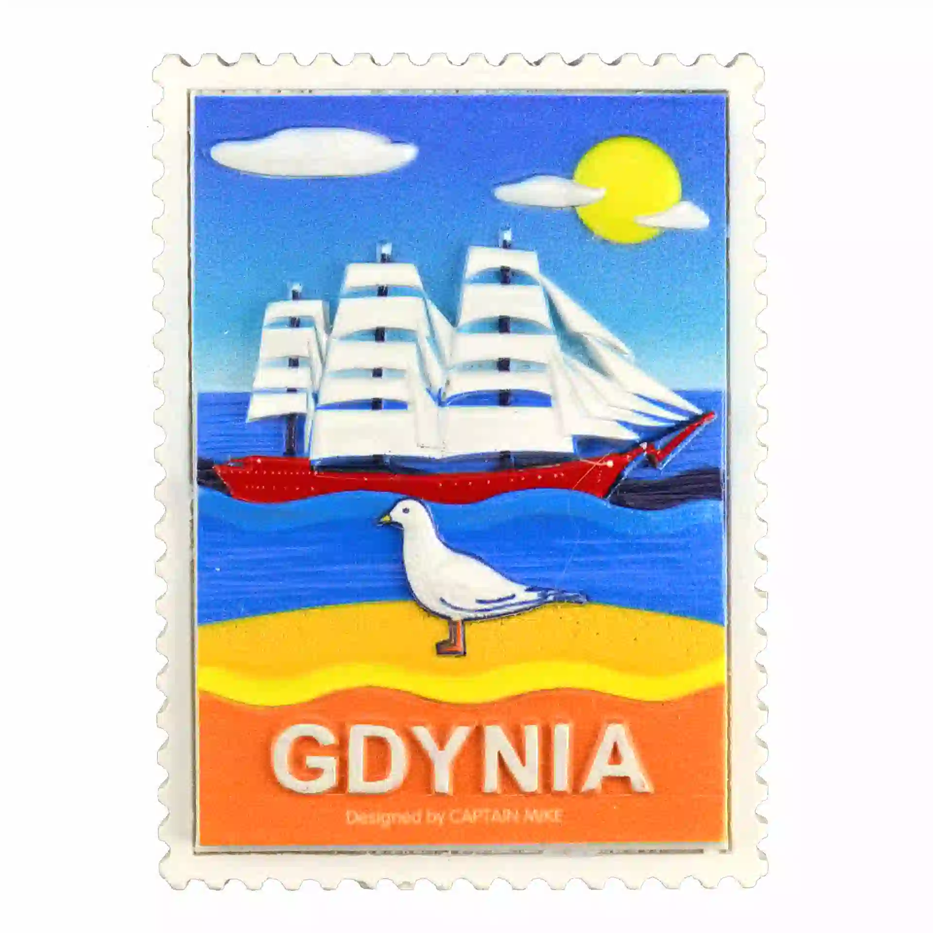 Magnes w Kształcie Znaczka Pocztowego z Motywem Morskim GDYNIA
