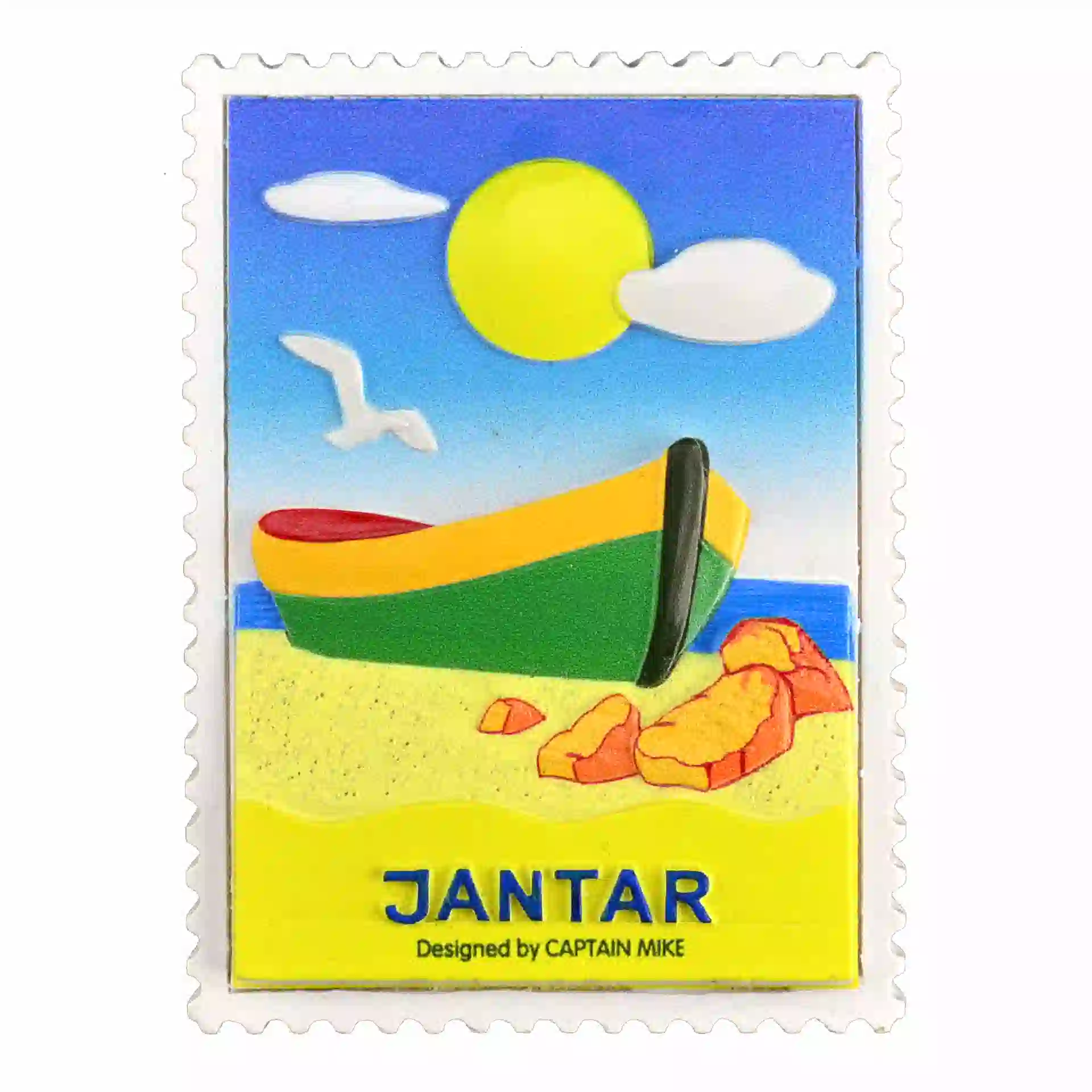 Magnes w Kształcie Znaczka Pocztowego z Motywem Morskim JANTAR