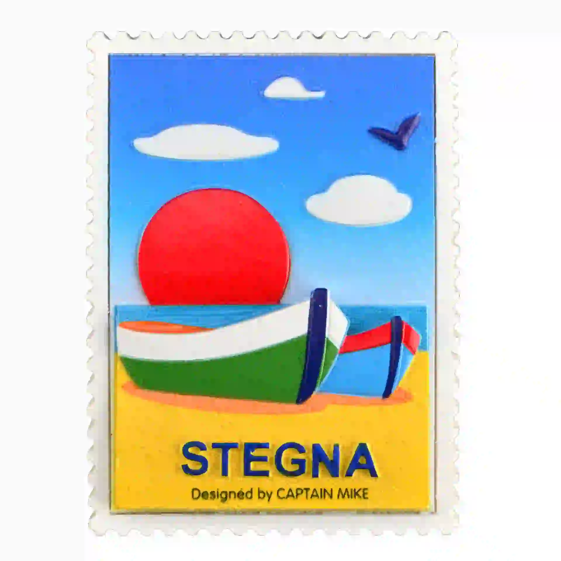 Magnes w Kształcie Znaczka Pocztowego z Motywem Morskim STEGNA