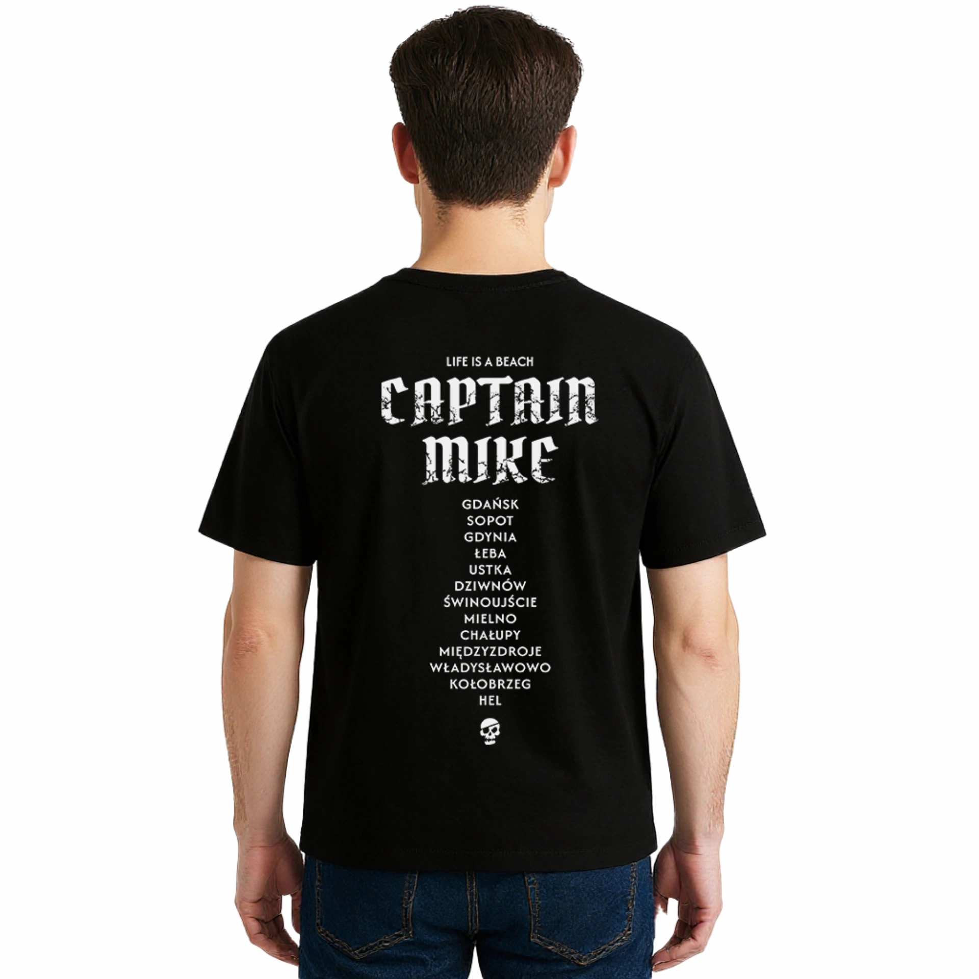 Męska koszulka oversize z bawełny tureckiej z nadrukiem na plecach Captain Mike.
