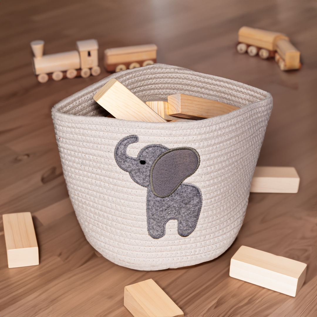 Koszyk organizer składany sprawdzi się w każdej sytuacji. Możesz go używać w kuchni, salonie, łazience, pokoju dziecięcym, biurze, a nawet w samochodzie. Idealny na zabawki, klocki, pluszaki czy książeczki. Motyw słonia z pewnością spodoba się najmłodszym, a ty zyskasz sposób na szybkie uporządkowanie pokoju.