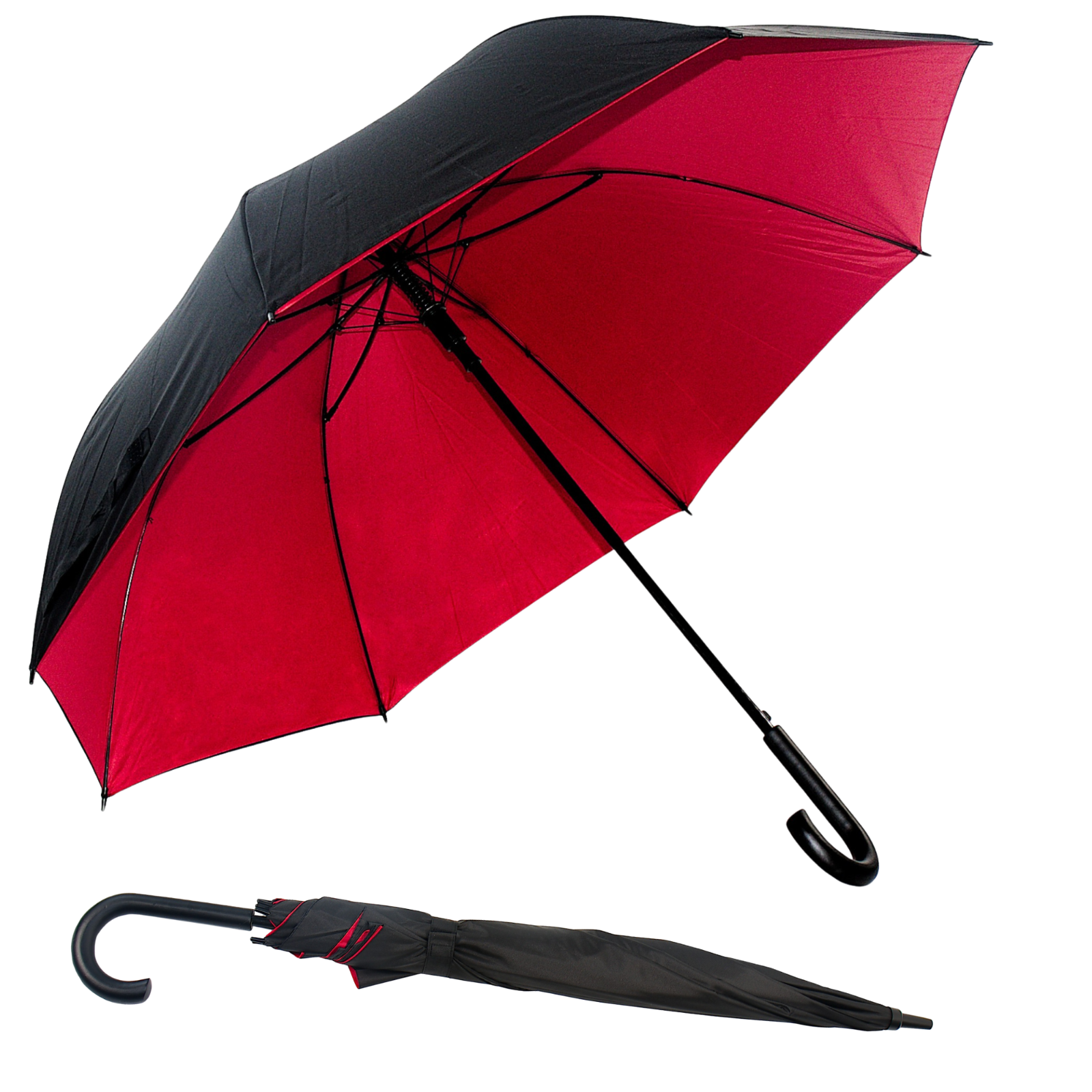 - Dwustronna czasza: Wysokiej jakości materiał w dwóch kolorach – elegancki i nietuzinkowy, wyróżniający się na tle zwykłych parasoli.
